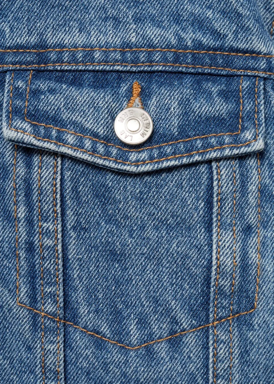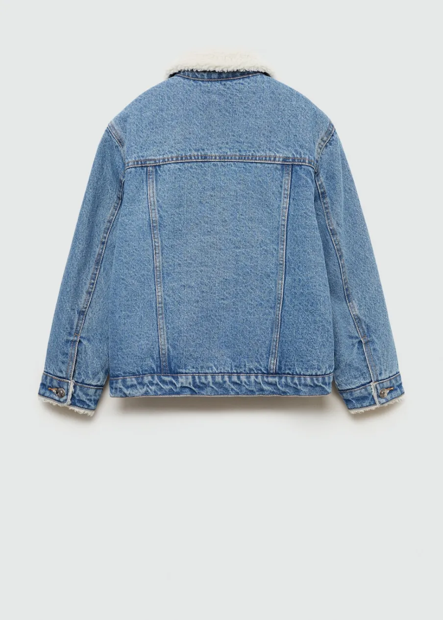Tkanina bawełniana w dżinsowym stylu. Model prosty. Futrzany kołnierz. Długi rękaw z guzikami na mankietach. Dwie kieszenie z patkami na guzik na klatce piersiowej. Dwie kieszenie boczne. Boczne szlufki w pasie. Futrzana podszewka z baranka. Zapięcie z przodu na guziki. Klasyczny kołnierzyk.