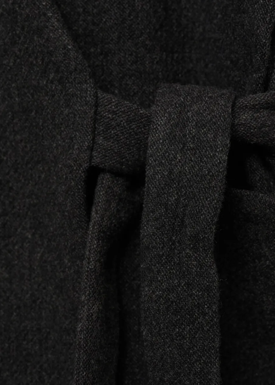 Wełniana tkanina. Fason kimono. Zakładany dekolt V. Wiązanie z boku. Długi rękaw. Dwie kieszenie nakładane po bokach. Limitowana edycja.