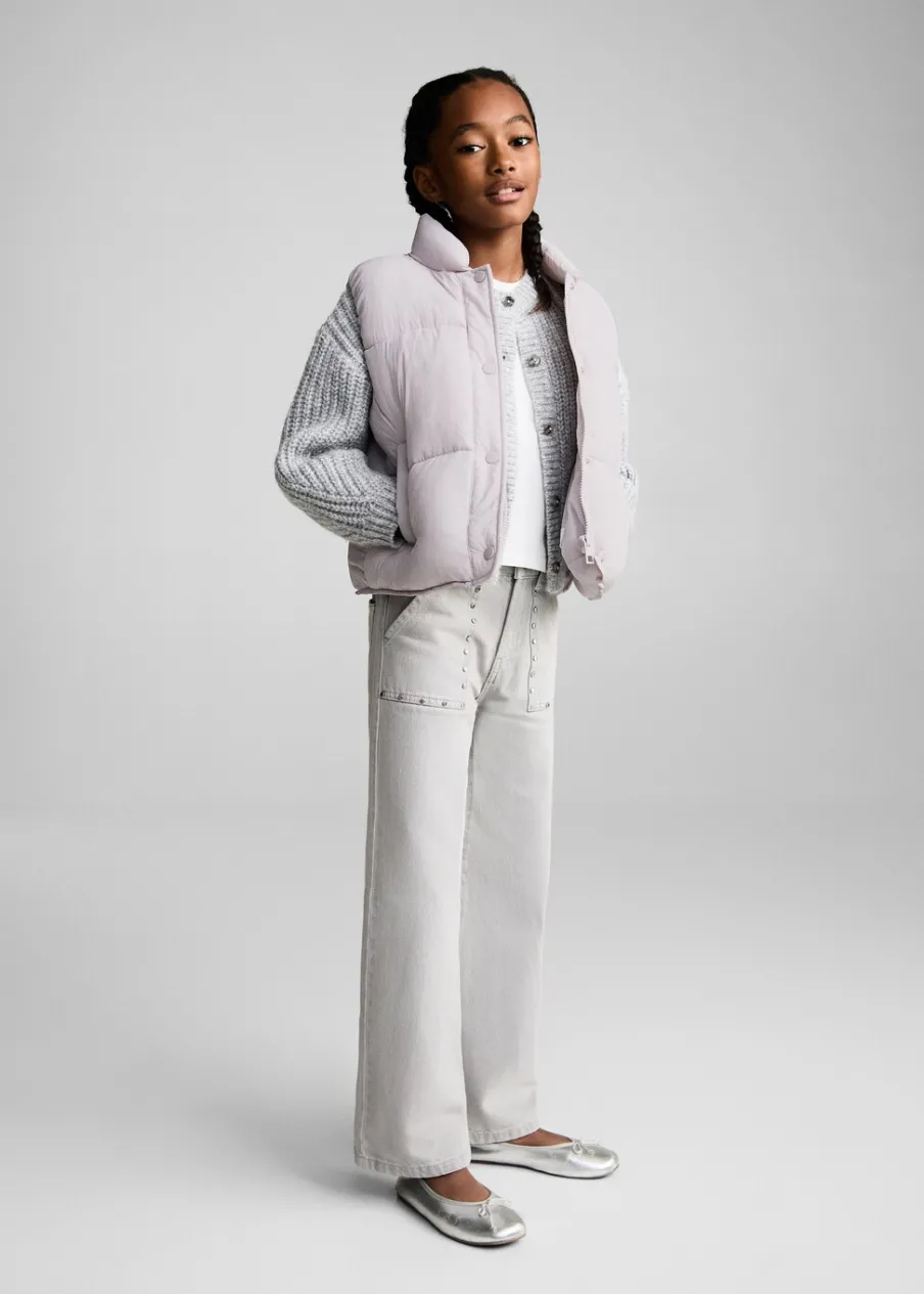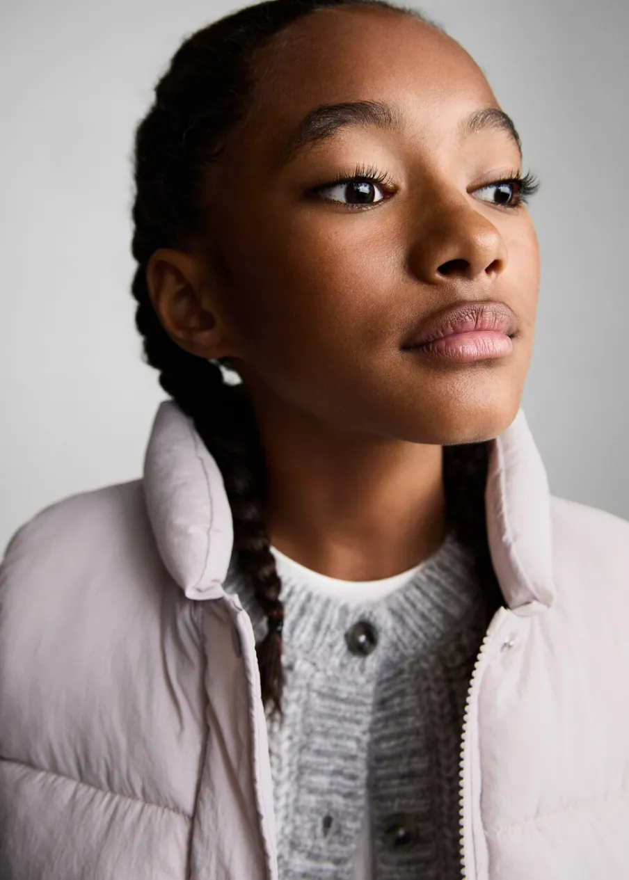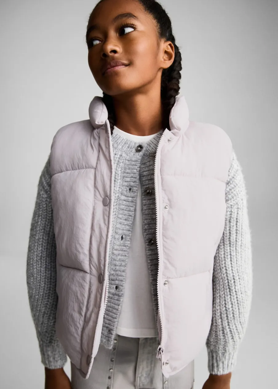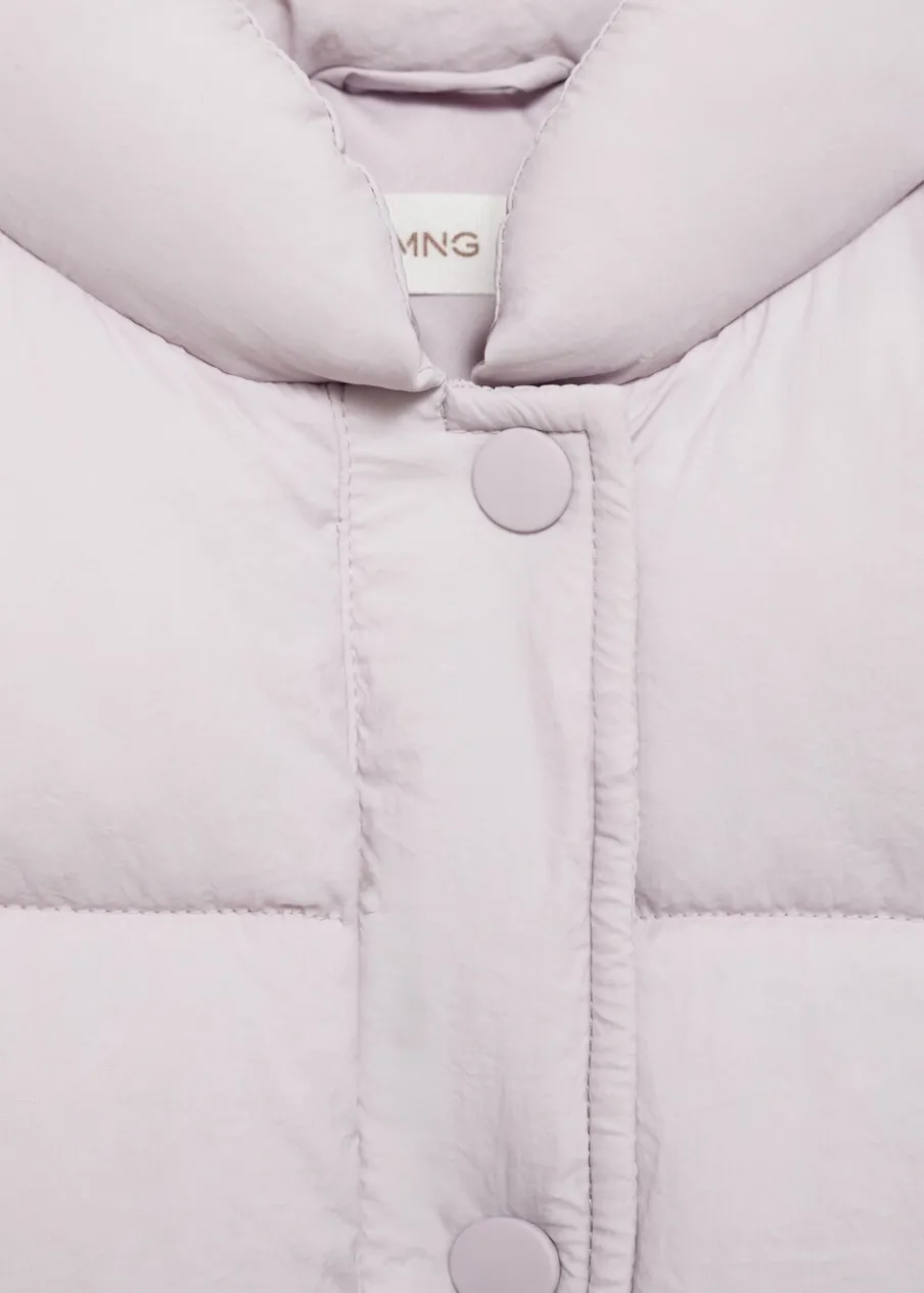 Pikowana tkanina. Golf. Dwie kieszenie z wypustkami z przodu. Zapięcie na zamek i guziki z przodu.
