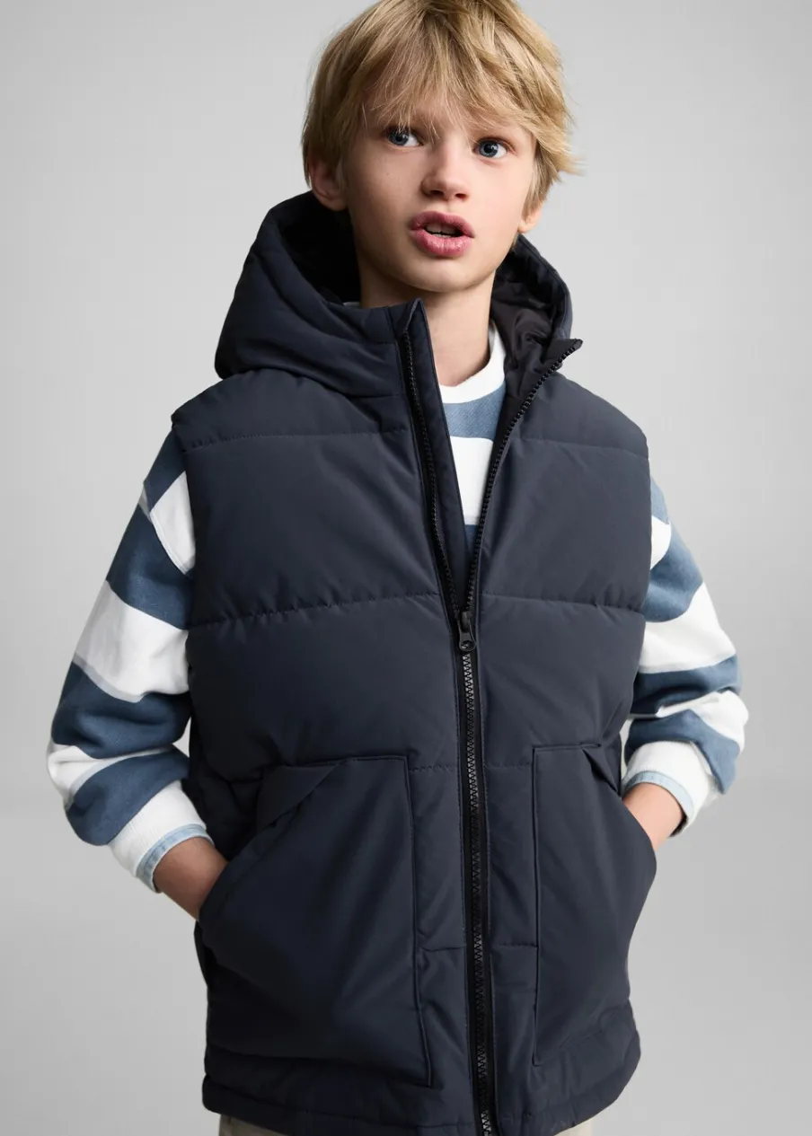 Model pikowany. Kaptur. Bez rękawów. Dwie kieszenie z wypustkami z przodu. Zapięcie na zamek z przodu.