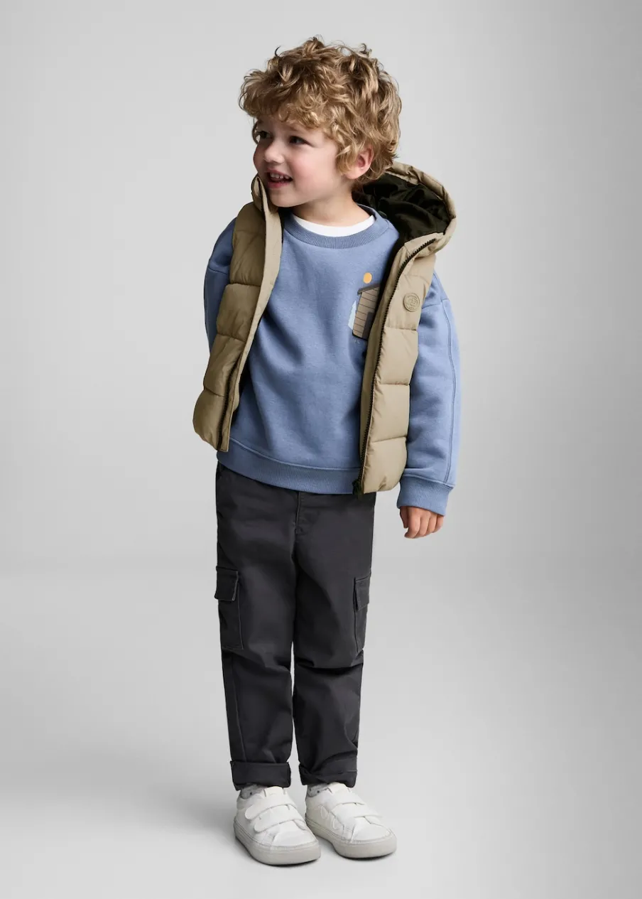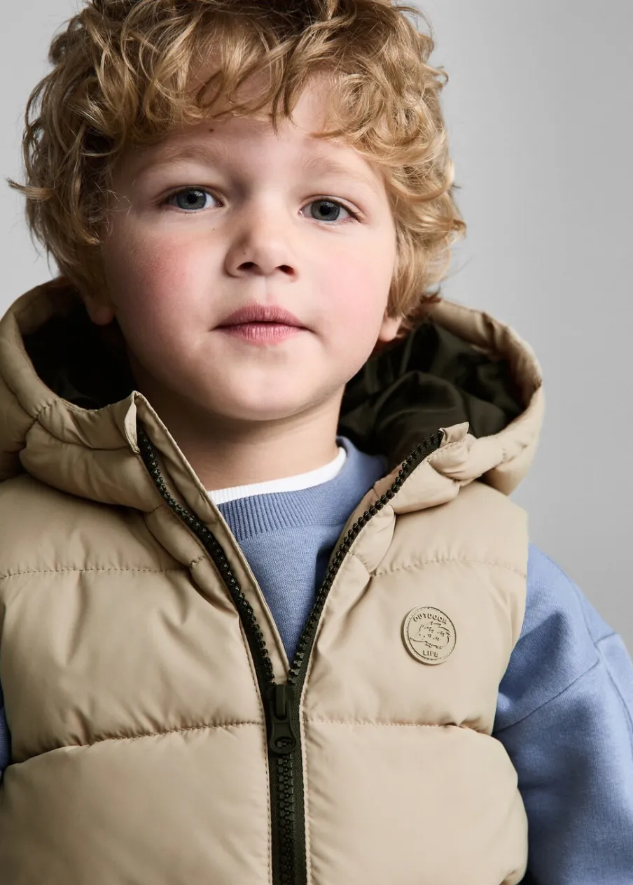 OpisModel pikowany. Model prosty. Golf. Kaptur. Dwie kieszenie. Bez rękawów.