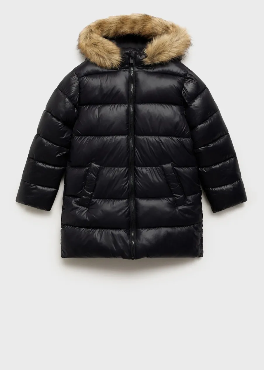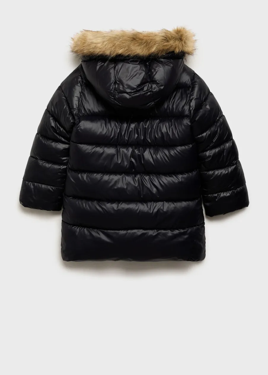 Model prosty. Kaptur z obszyciem ze sztucznego futra. Długi rękaw. Dwie kieszenie boczne. Zapięcie na zamek z przodu. Model pikowany.