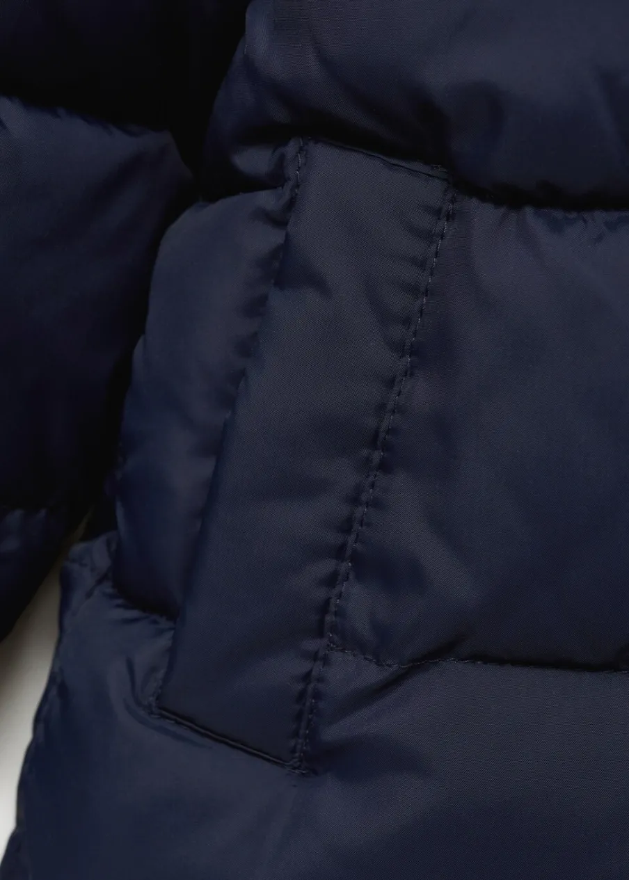 Model pikowany. Model prosty. Długi rękaw. Kaptur. Dwie kieszenie z przodu. Futrzana podszewka z baranka. Etykieta na dane kontaktowe. Golf. Zapięcie na suwak.