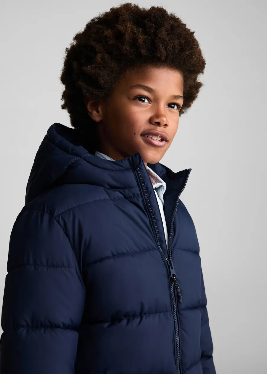 Kolekcja Powrót do szkoły. Model pikowany. Model prosty. Z wypełnieniem. Kaptur. Golf. Długi rękaw. Zapięcie z przodu. Zapięcie na suwak. Dwie kieszenie.