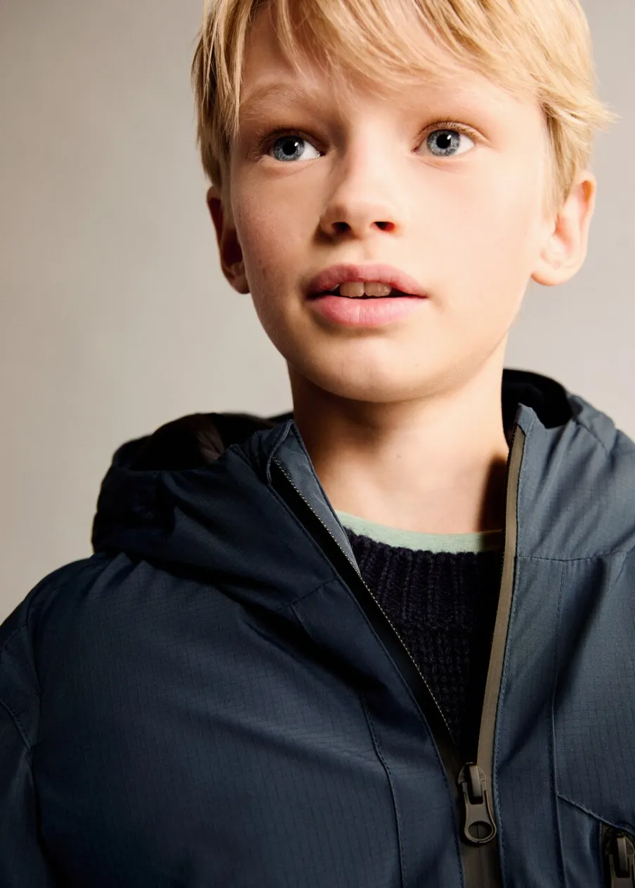 OpisKaptur. Model prosty. Wewnętrzna podszewka. Etykieta na dane kontaktowe. Zapięcie na odblaskowy zamek z przodu. Mo…