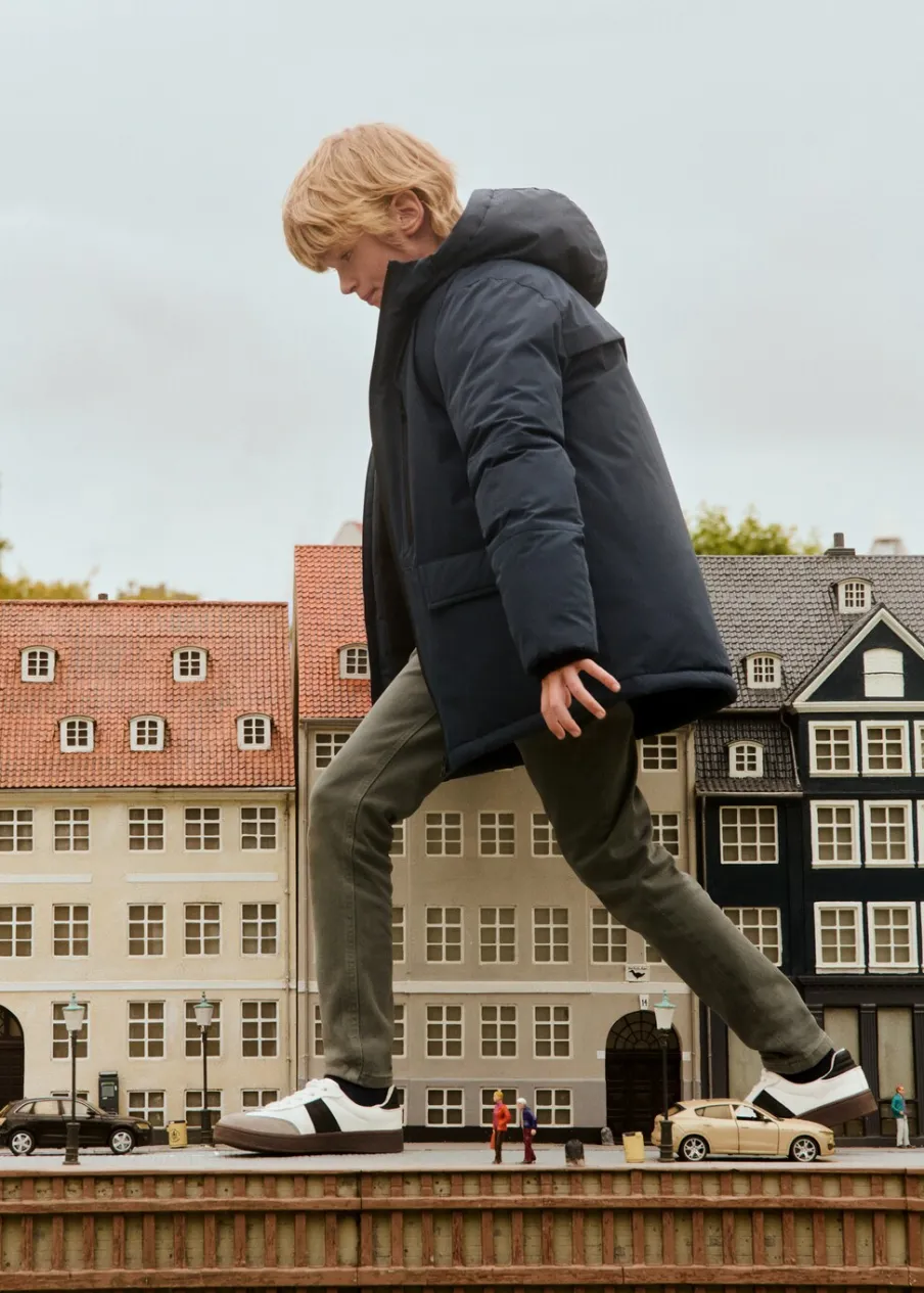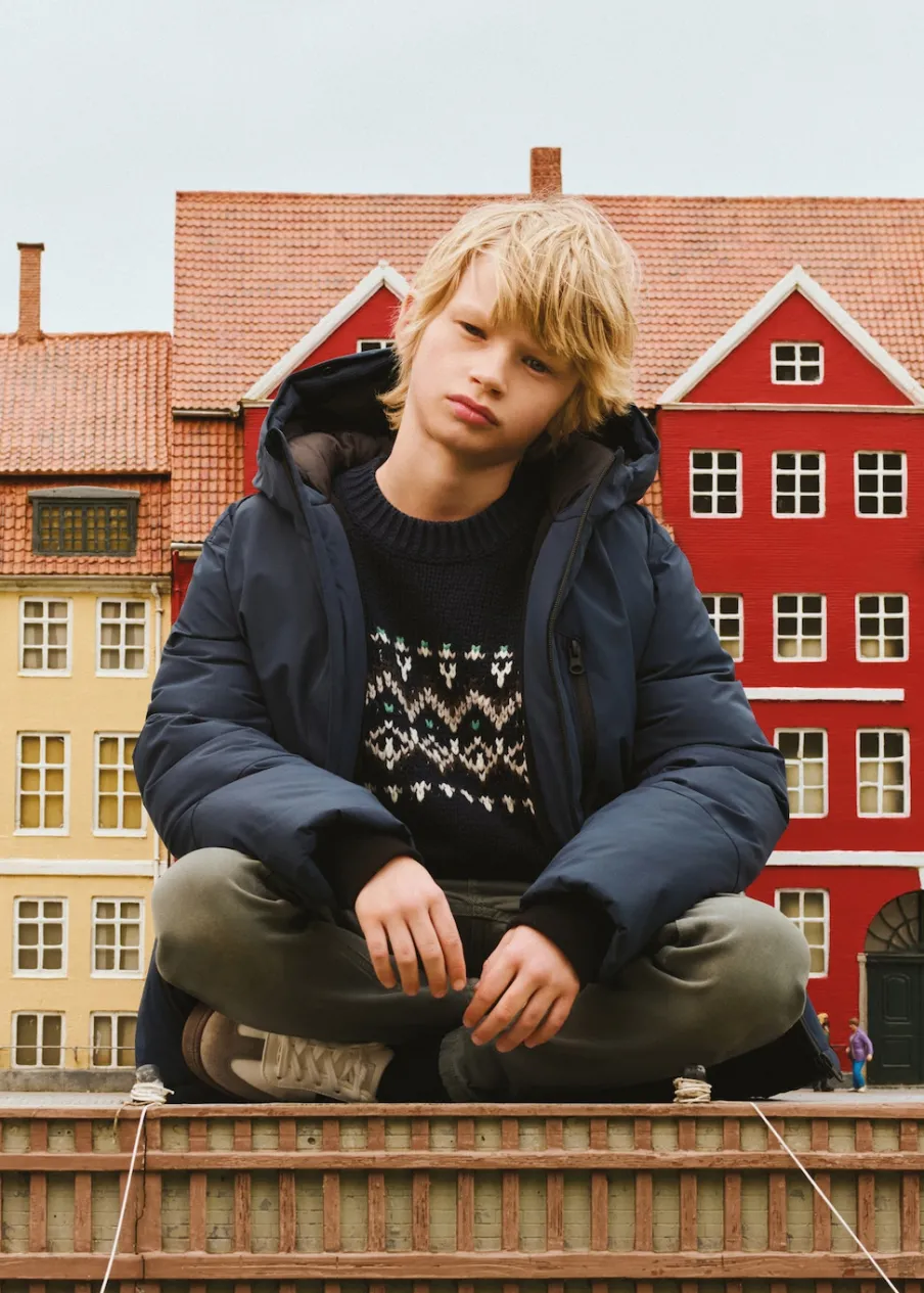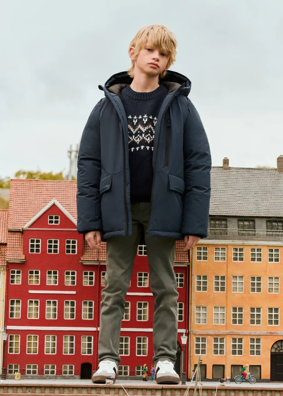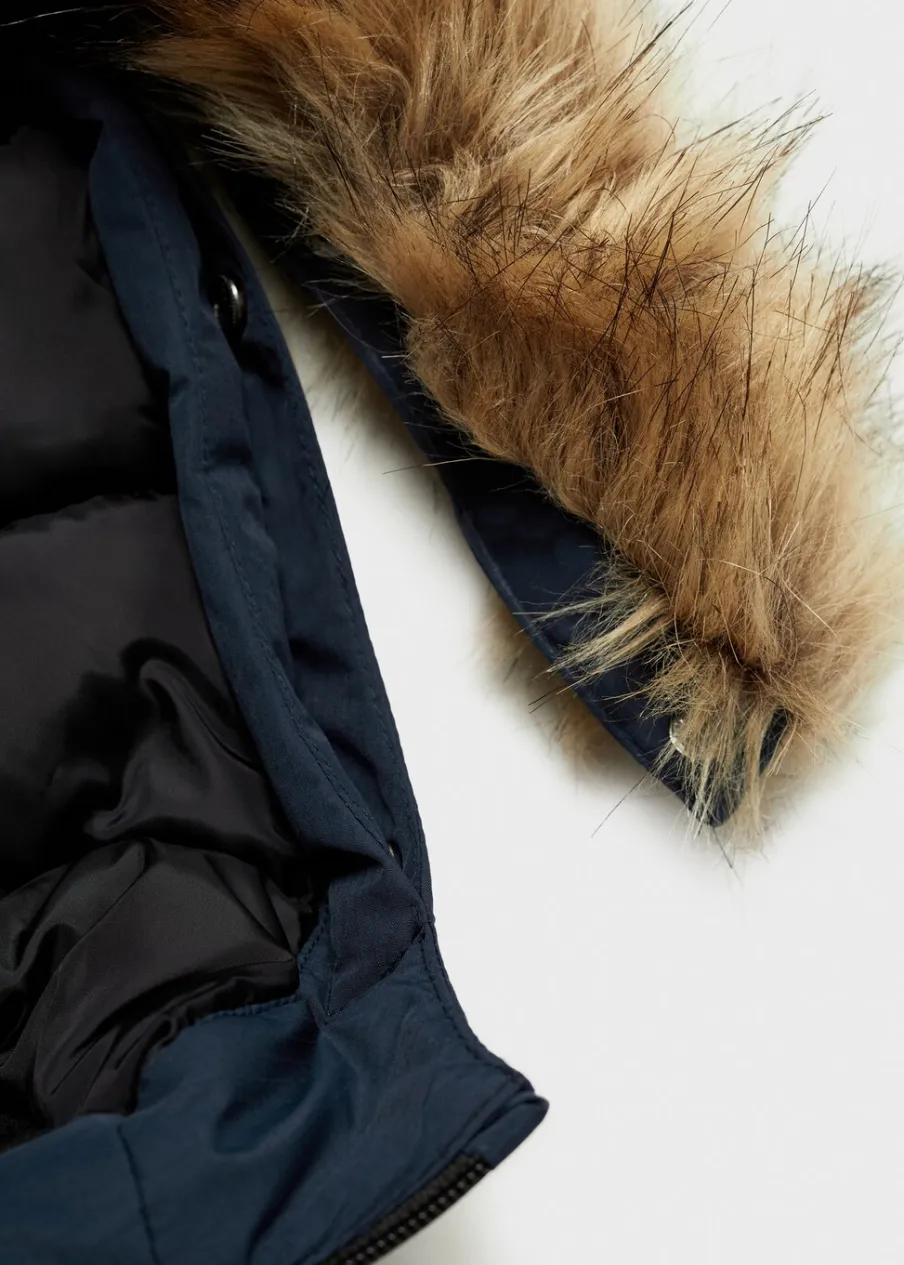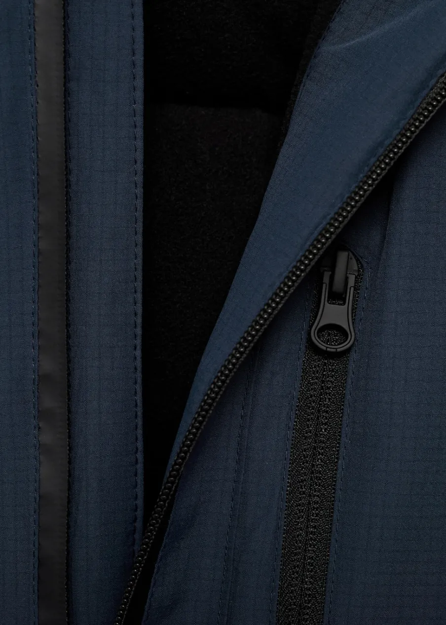 Kaptur. Model prosty. Wewnętrzna podszewka. Etykieta na dane kontaktowe. Zapięcie na odblaskowy zamek z przodu. Model pikowany. Golf. Trzy kieszenie z przodu.
