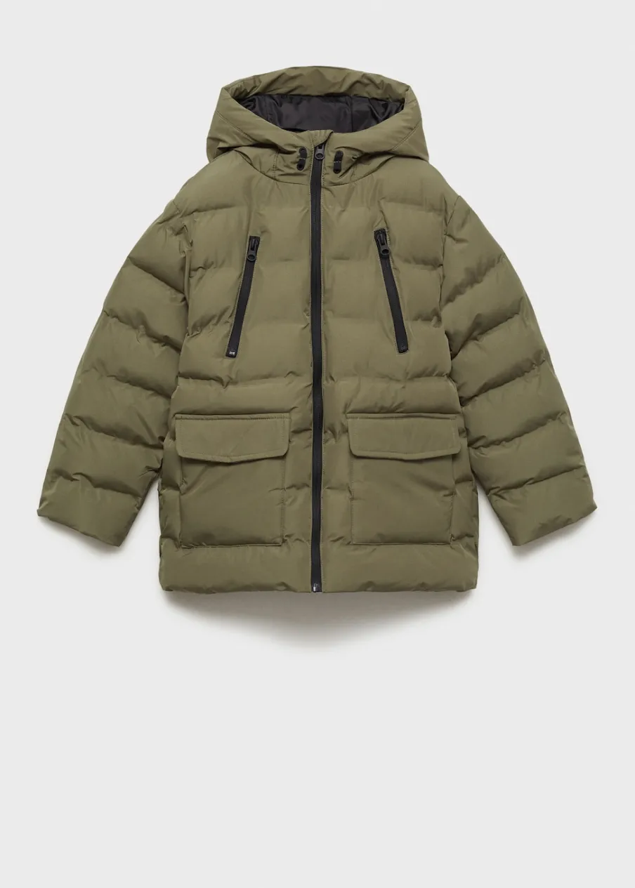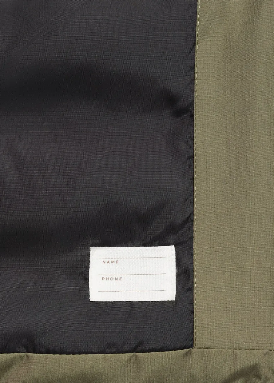 Model pikowany. Model prosty. Golf. Długi rękaw. Dwie kieszenie zapinane na suwak. Z przodu dwie naszywane kieszenie z zapięciem na guzik i dwie wpuszczane kieszenie. Wewnętrzna podszewka. Wewnętrzna etykieta na dane osobowe. Zapięcie na suwak.