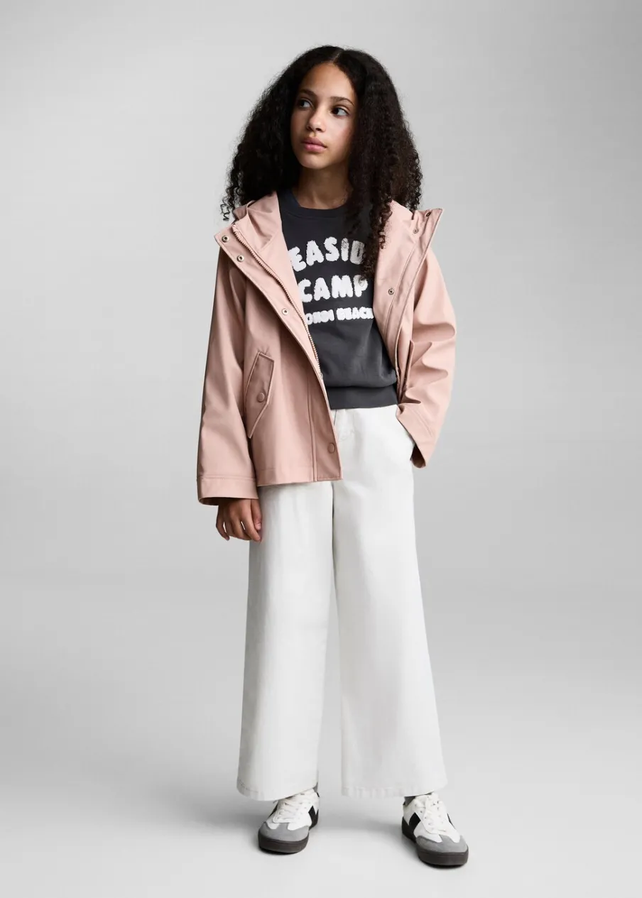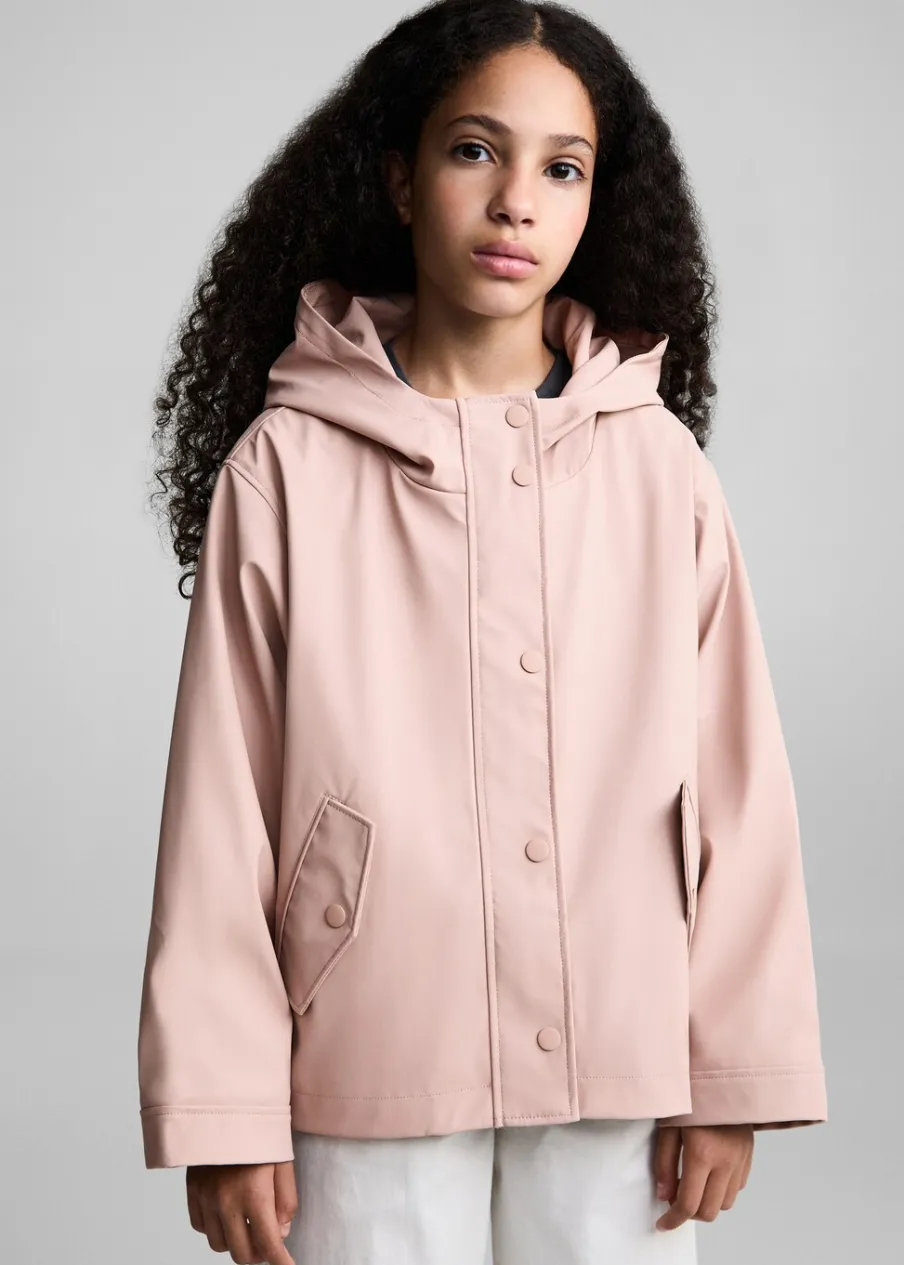 Nieprzemakalny materiał. Model prosty. Kaptur. Długi rękaw. Wewnętrzna podszewka. Dwie boczne kieszenie z guzikiem. Zapięcie na suwak i guziki. Etykieta na dane kontaktowe.