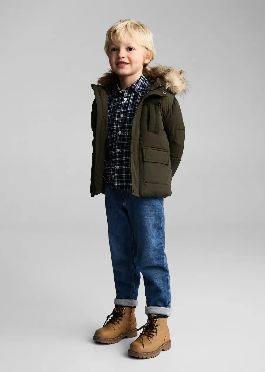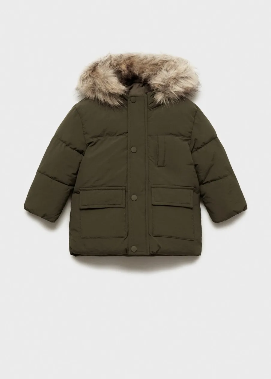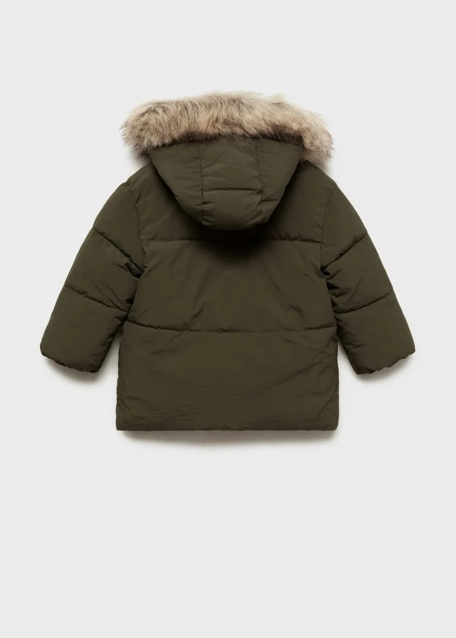 Model pikowany. Model prosty. Odpinany kaptur z syntetycznym futerkiem. Trzy kieszenie z przodu. Długi rękaw. Polarowa podszewka. Etykieta na dane kontaktowe. Zapięcie na suwak i zatrzaskowe guziki.
