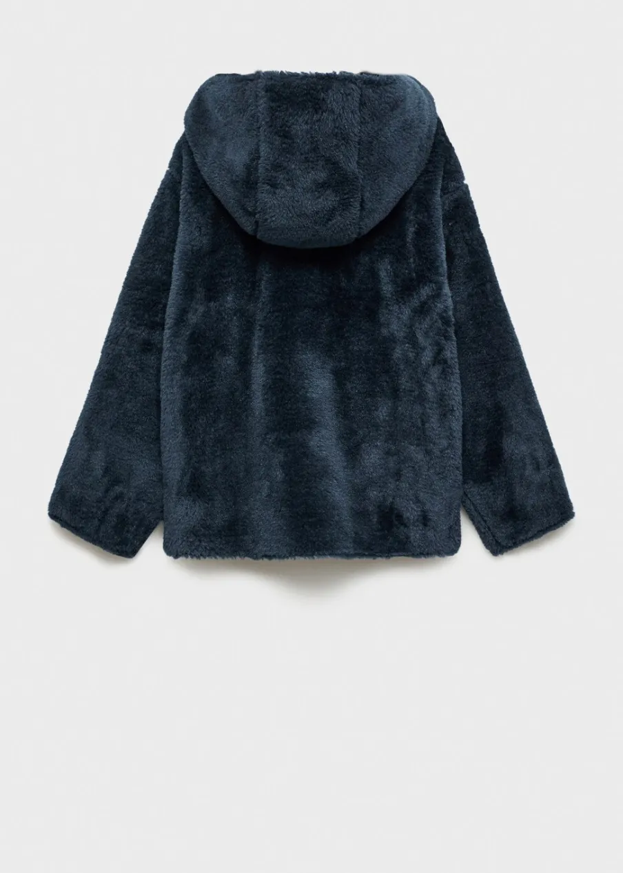 OpisModel prosty. Włochata tekstura. Kaptur. Dwie kieszenie nakładane po bokach. Długi rękaw. Wewnętrzna podszewka….