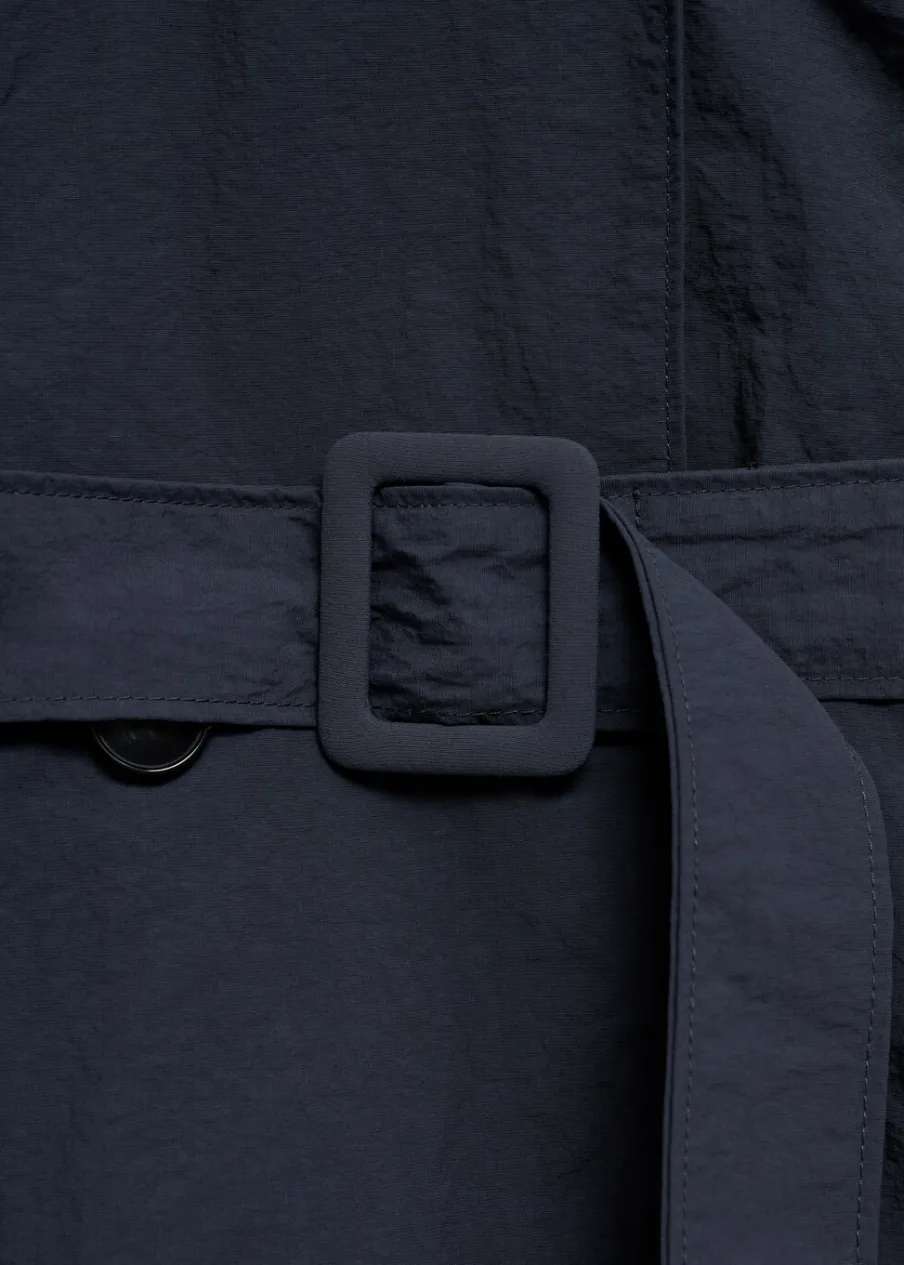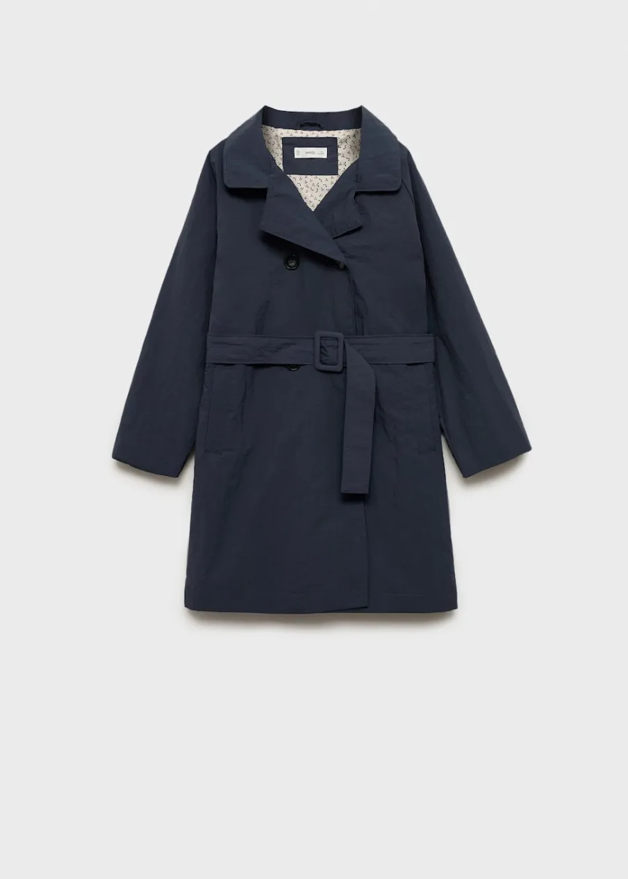 Kolekcja Powrót do szkoły. Model prosty. Model długi. Dekolt w szpic z kołnierzykiem. Długi rękaw. Klapy. Zapięcie na guziki. Wzorzysta podszewka. Dwurzędowe zapięcie. Pasek zapinany na klamrę.