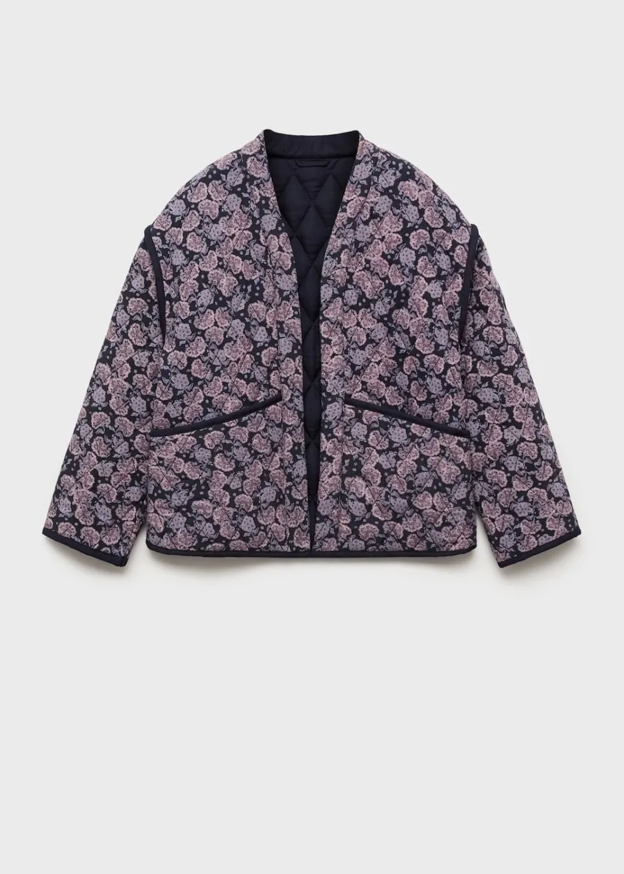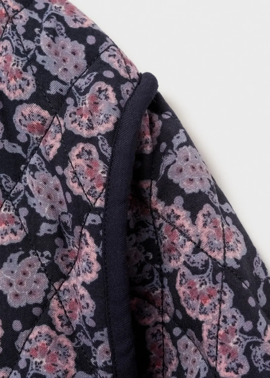 Kwiatowy wzór. Model prosty. Dekolt V. Dwie kieszenie z przodu. Długi rękaw. Bez zapięcia. Tkanina z wiskozy.