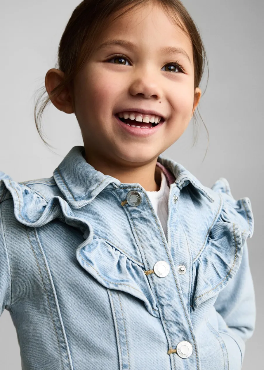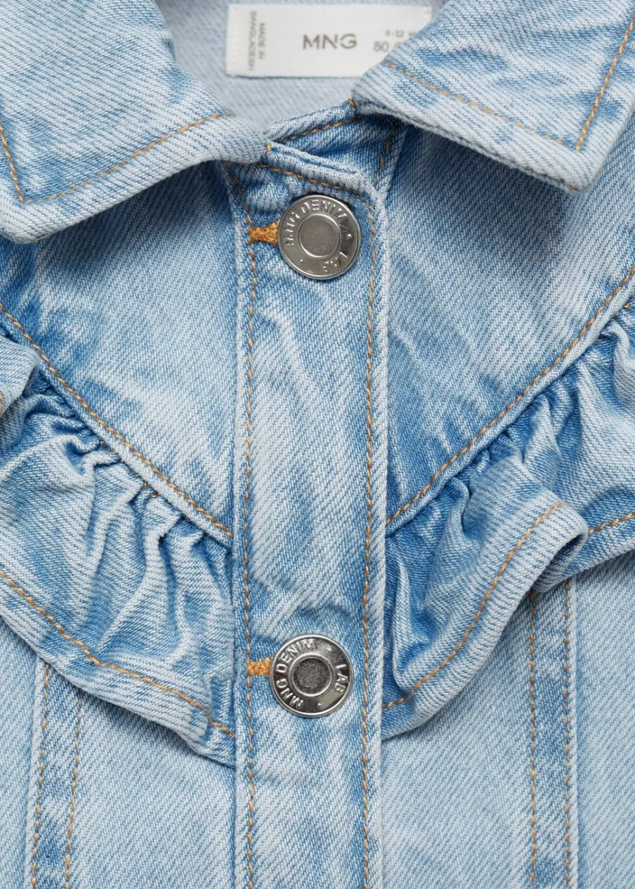 OpisBawełna 100%. Z falbanami. Metalowe guziki. Dwie kieszenie z wypustkami z przodu. Ozdobne szwy. Koszulowy kołnierz…