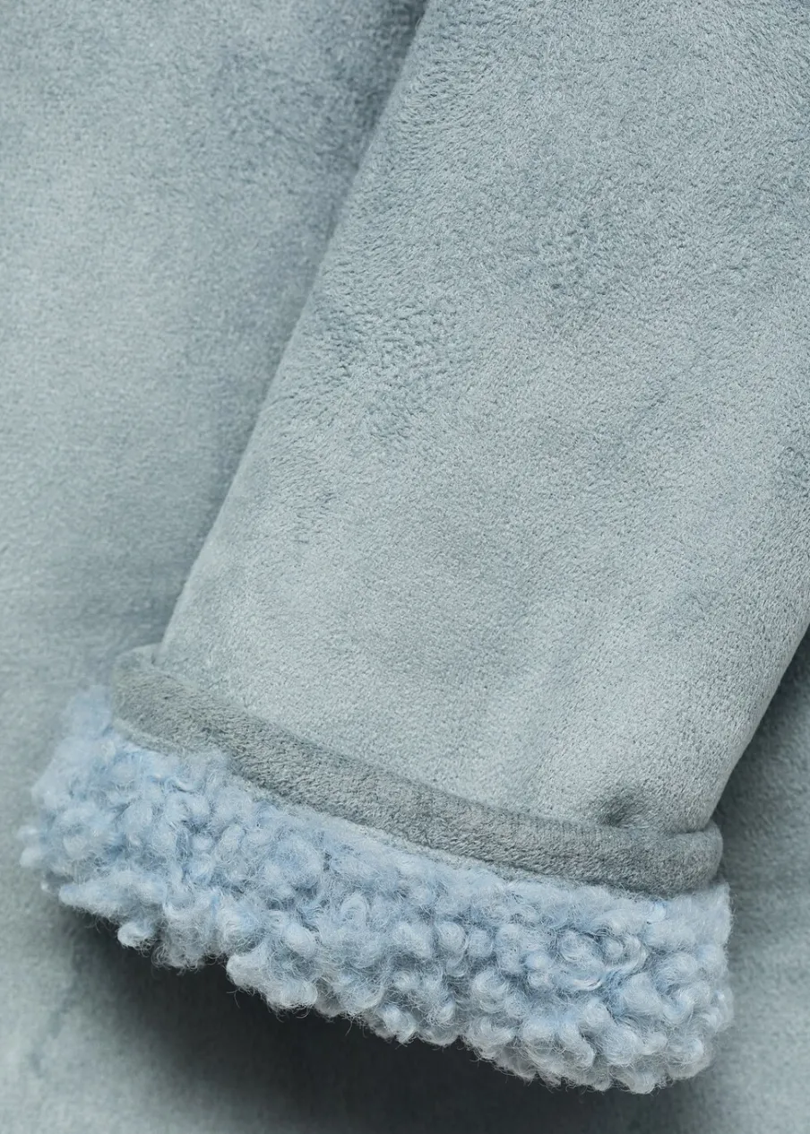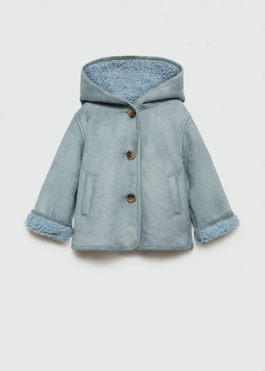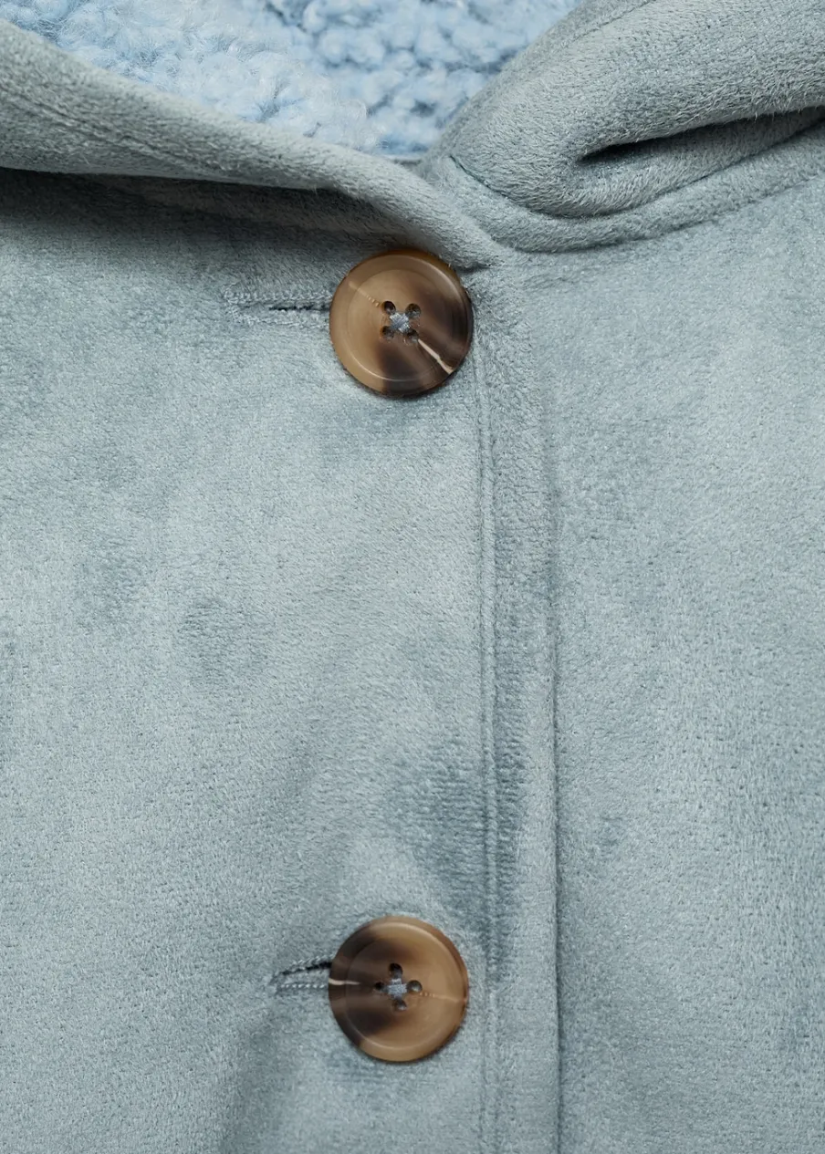Kaptur. Długi rękaw. Dwie kieszenie boczne. Zapięcie na guziki z przodu. Futrzana podszewka z baranka. Model prosty.