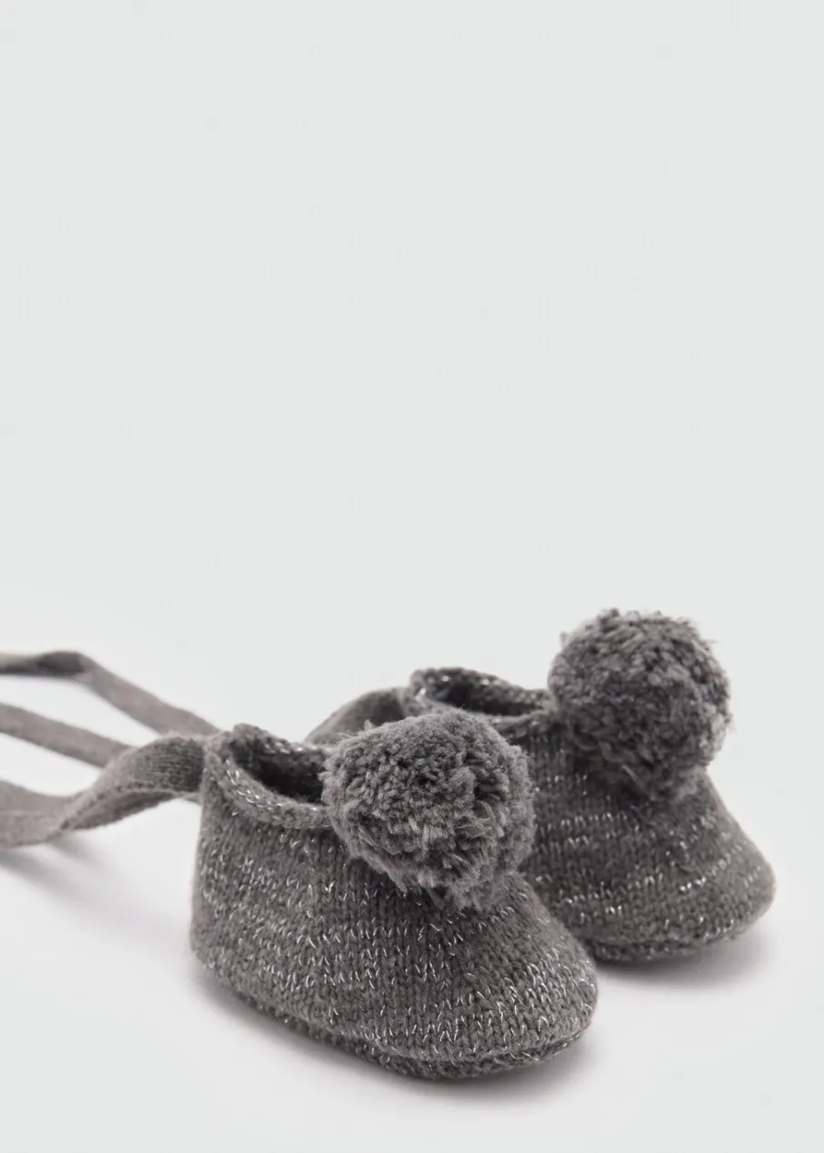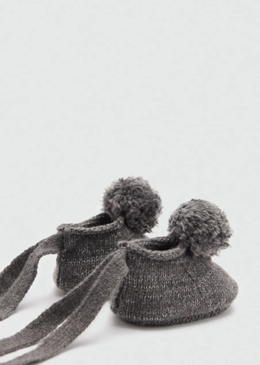 OpisDzianinowa tkanina. Okrągły nosek. Detal z pomponem. Zapięcie na paski.