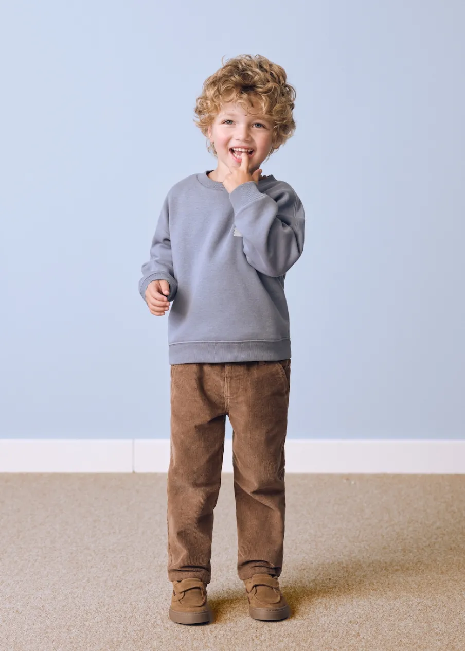 Bawełna 100%. Model prosty. Elastyczny pas. Model długi. Zapięcie na zatrzaskowy guzik. Powrót do szkoły. Sztruksowa tkanina.