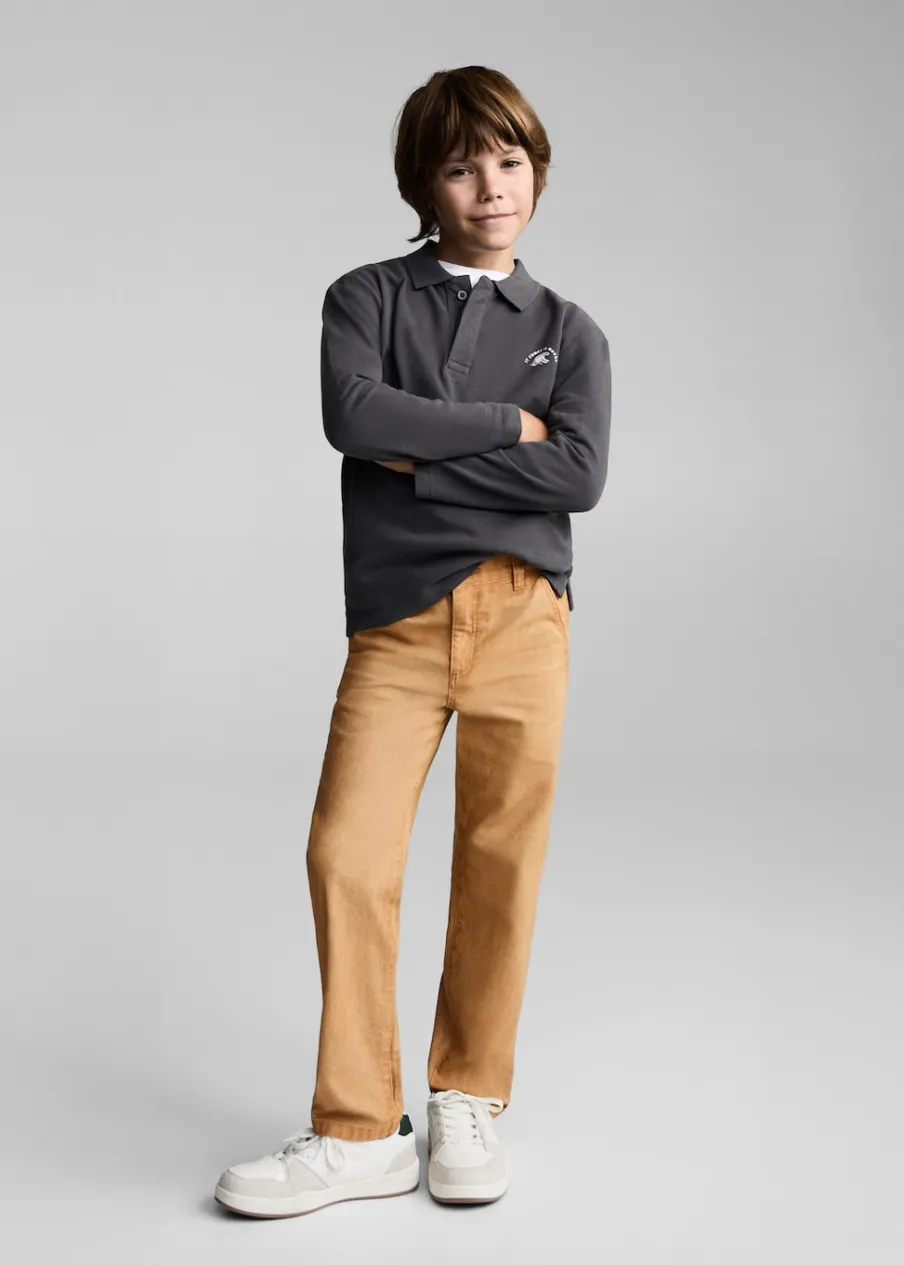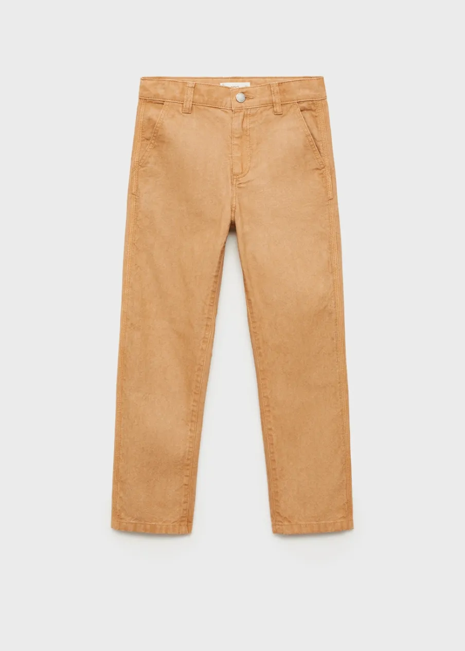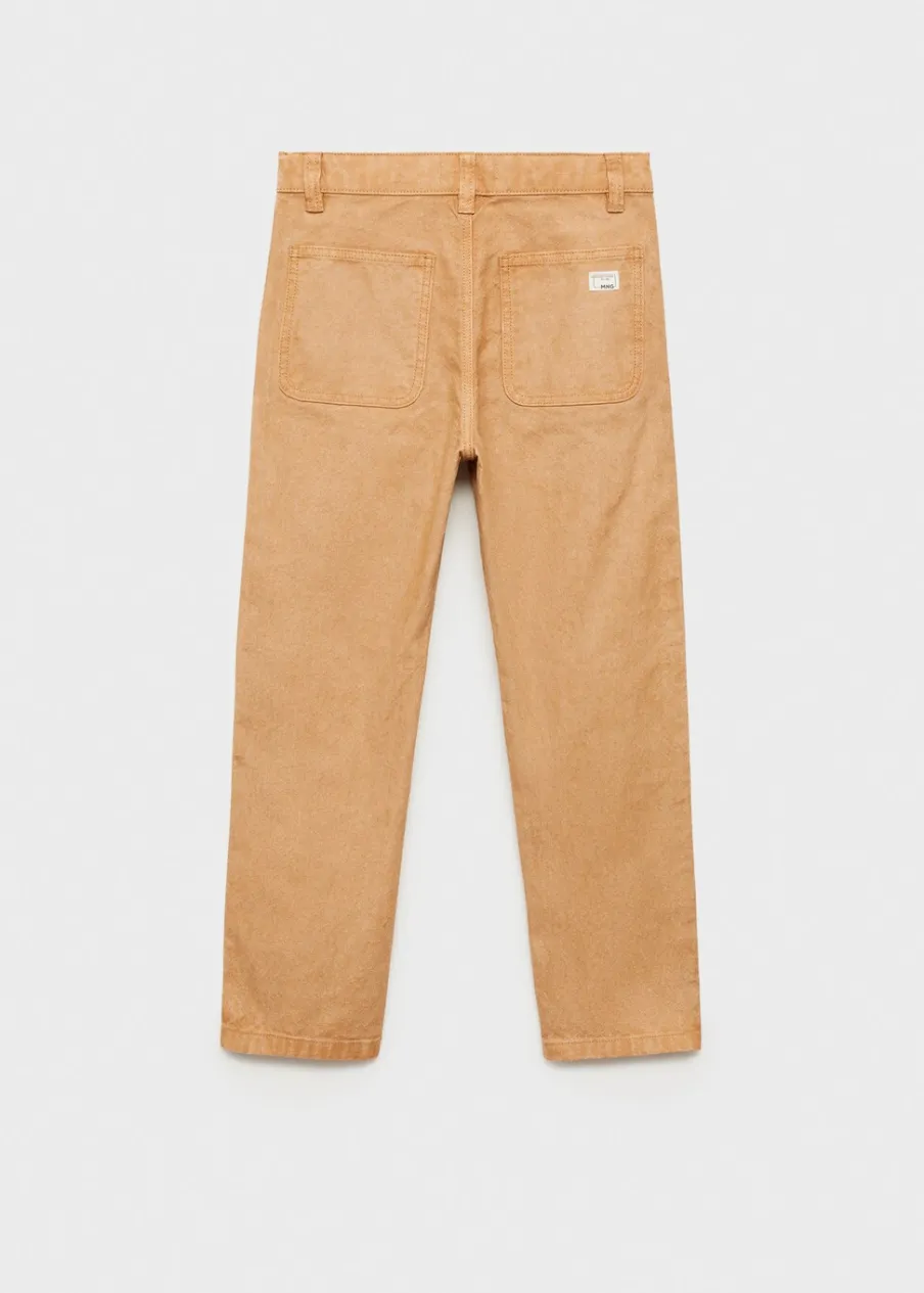 Tkanina bawełniana w dżinsowym stylu. Model prosty. Model długi. Cztery kieszenie. Zapięcie na suwak i guzik.