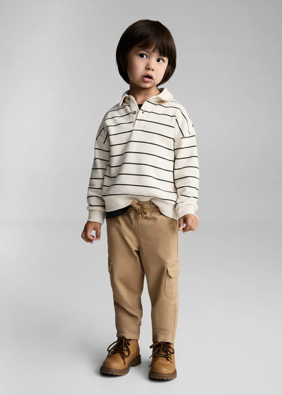 Bawełniana tkanina. Fason cargo. Sznurek w pasie. Kieszenie boczne. Cztery kieszenie cargo po bokach. Naszywana kieszeń z tyłu.