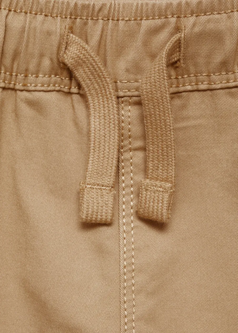 OpisBawełniana tkanina. Fason cargo. Sznurek w pasie. Kieszenie boczne. Cztery kieszenie cargo po bokach. Naszywana kie…