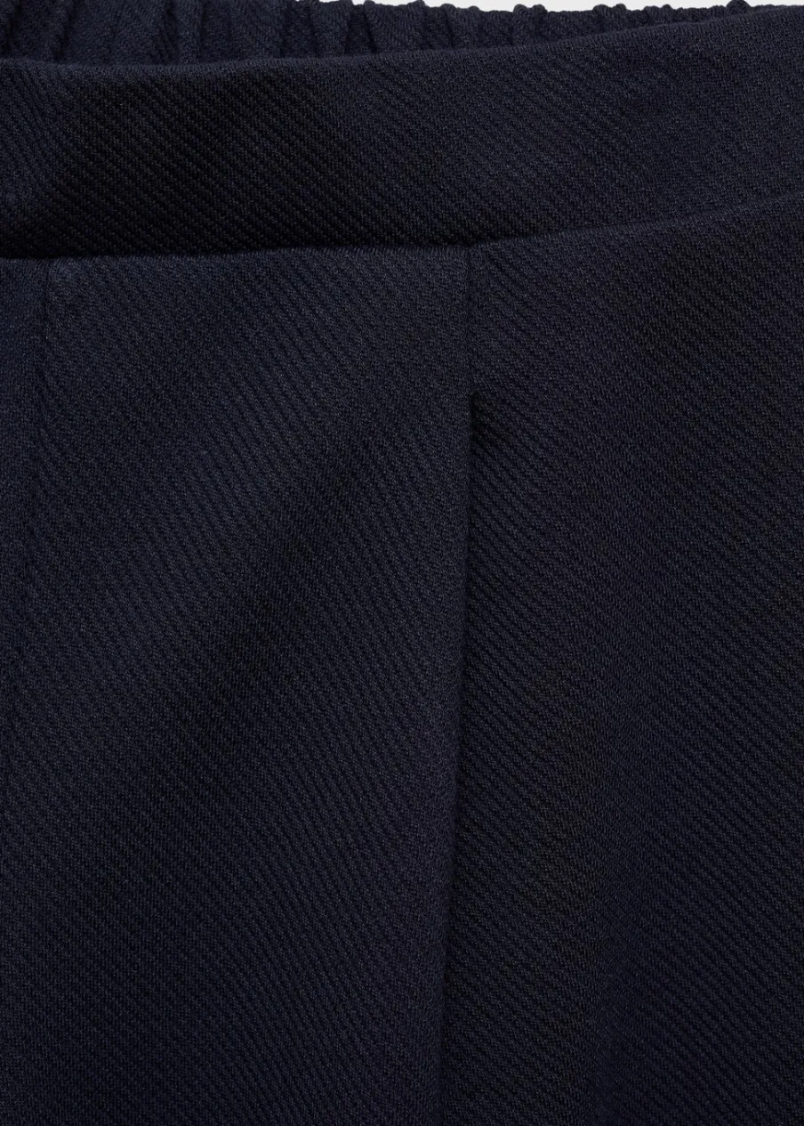 Fason culotte. Fason capri. Elastyczny pas. Detal z zakładkami. Bez zapięcia.