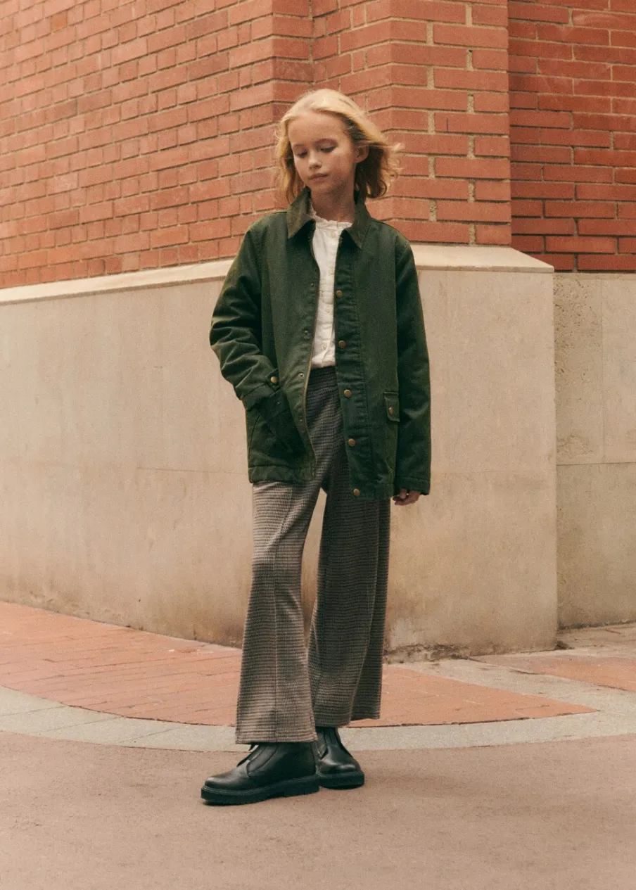 OpisDeseń kurza stopka. Fason culotte. Elastyczna gumka. Dwie kieszenie boczne.