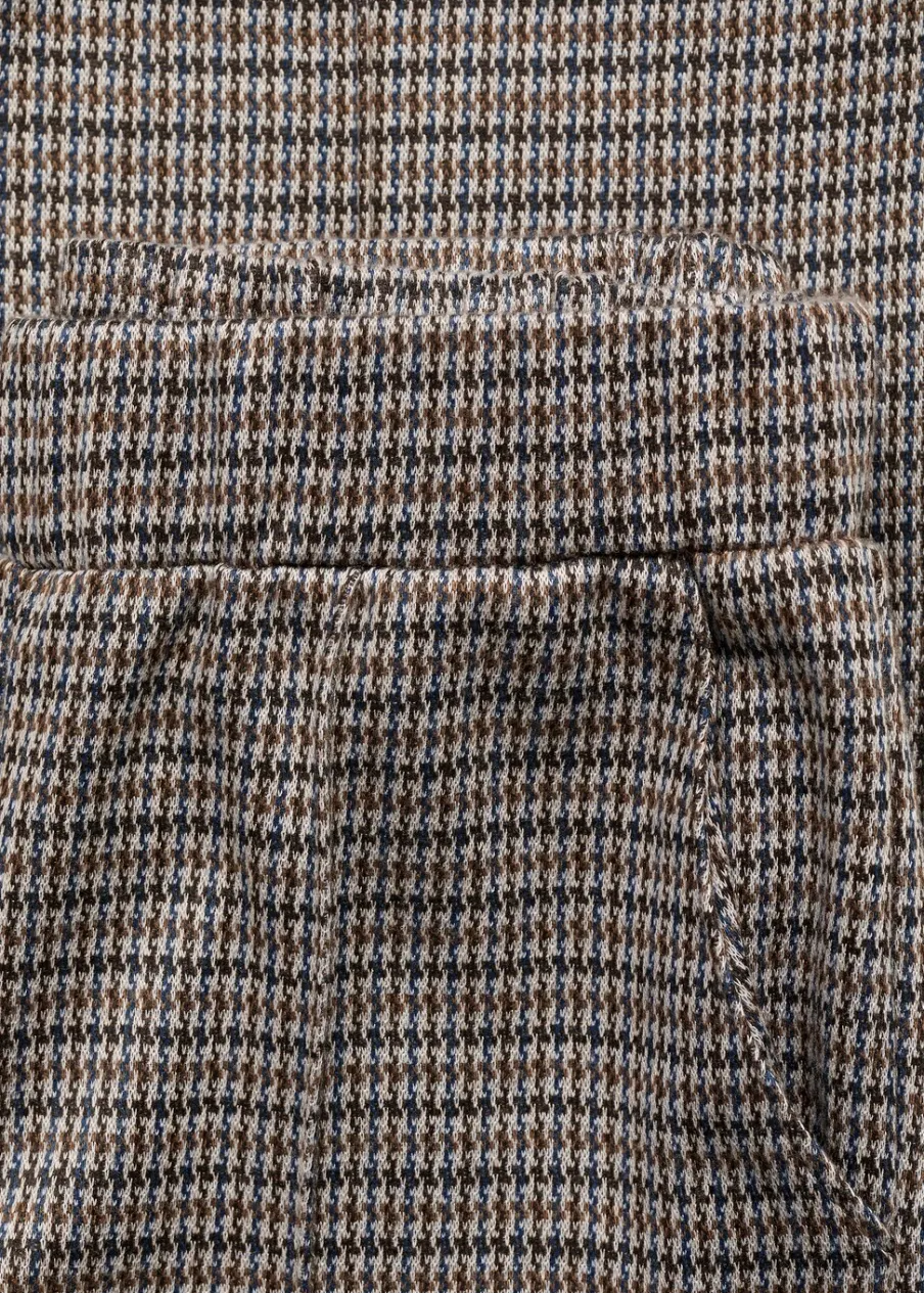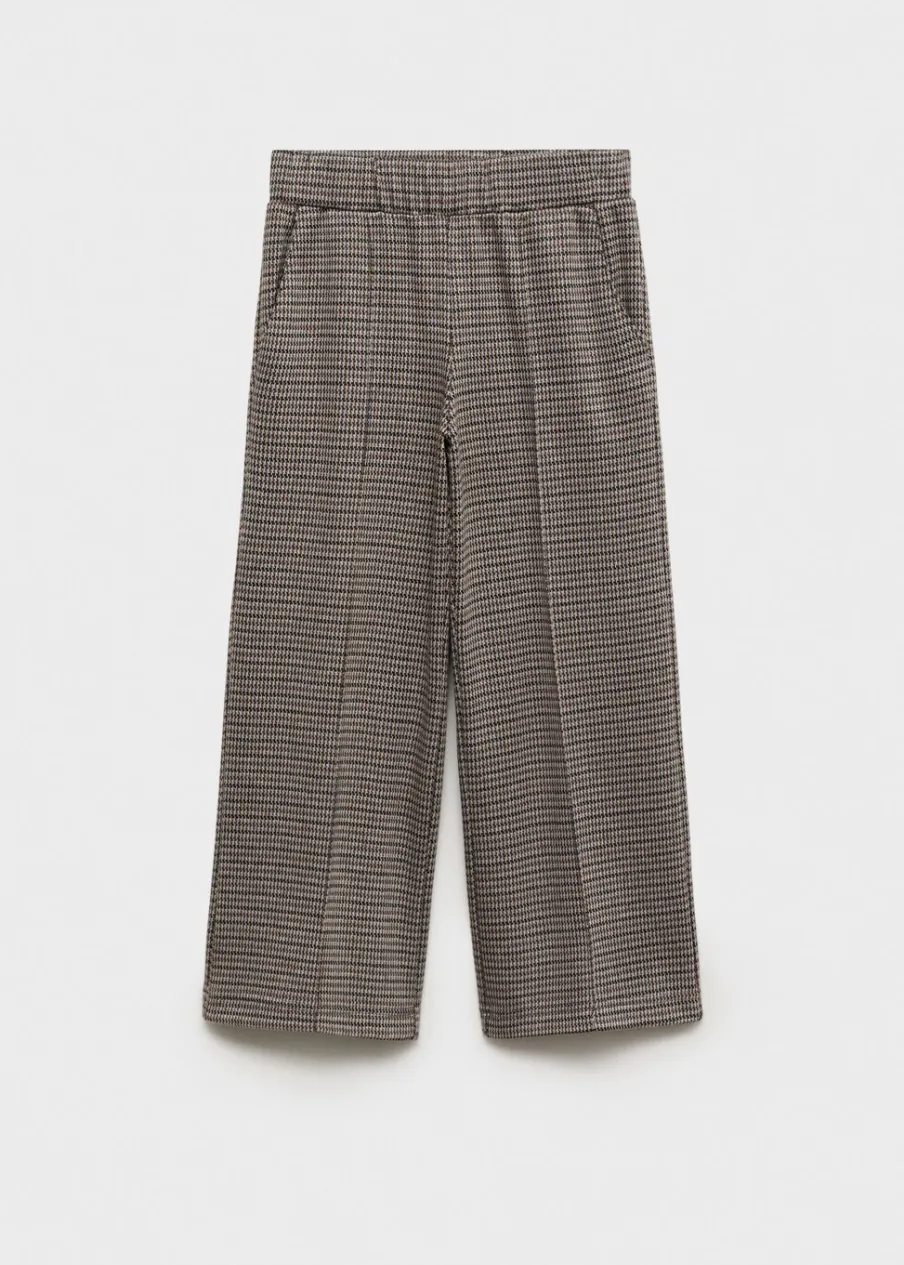 Deseń kurza stopka. Fason culotte. Elastyczna gumka. Dwie kieszenie boczne.