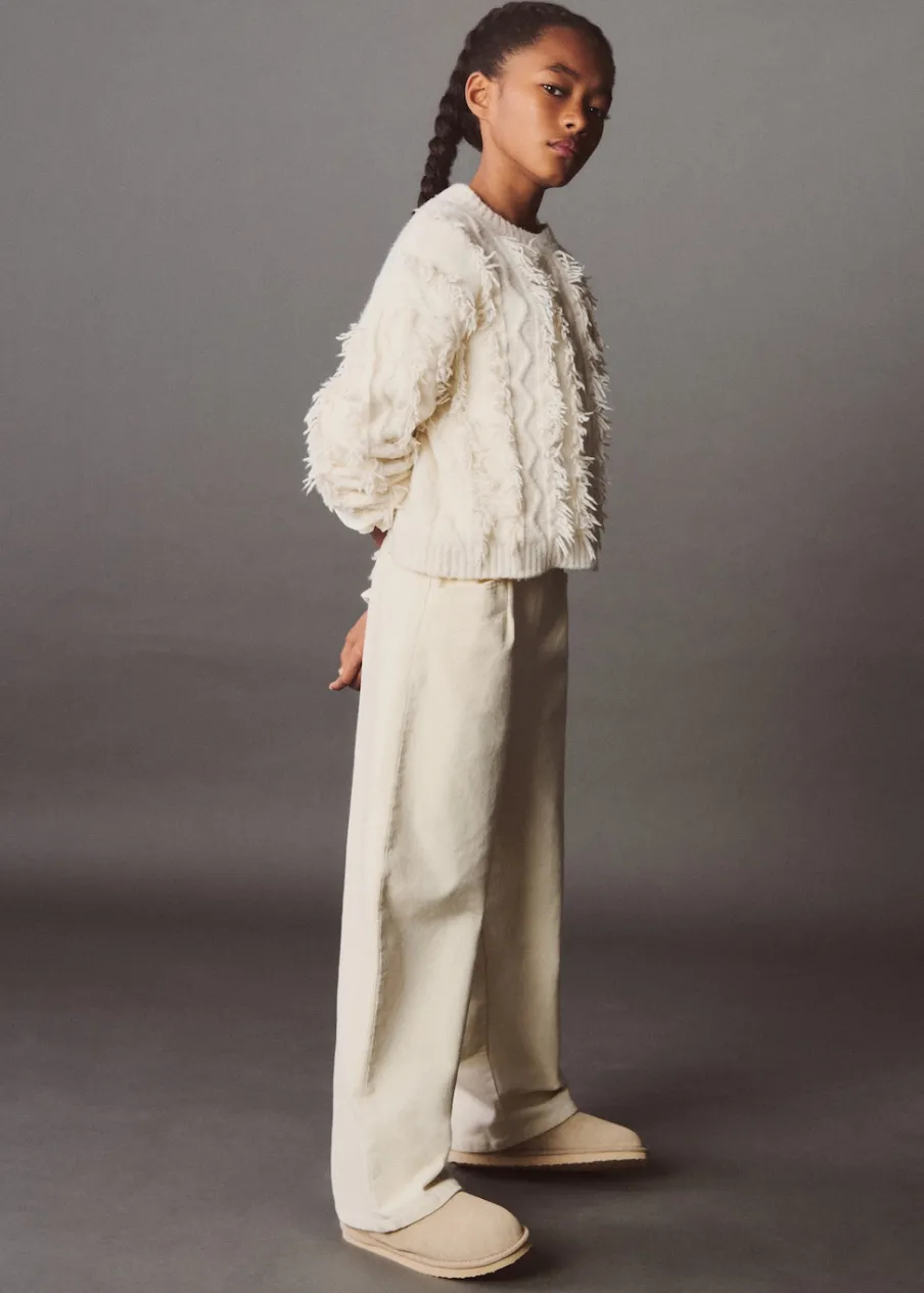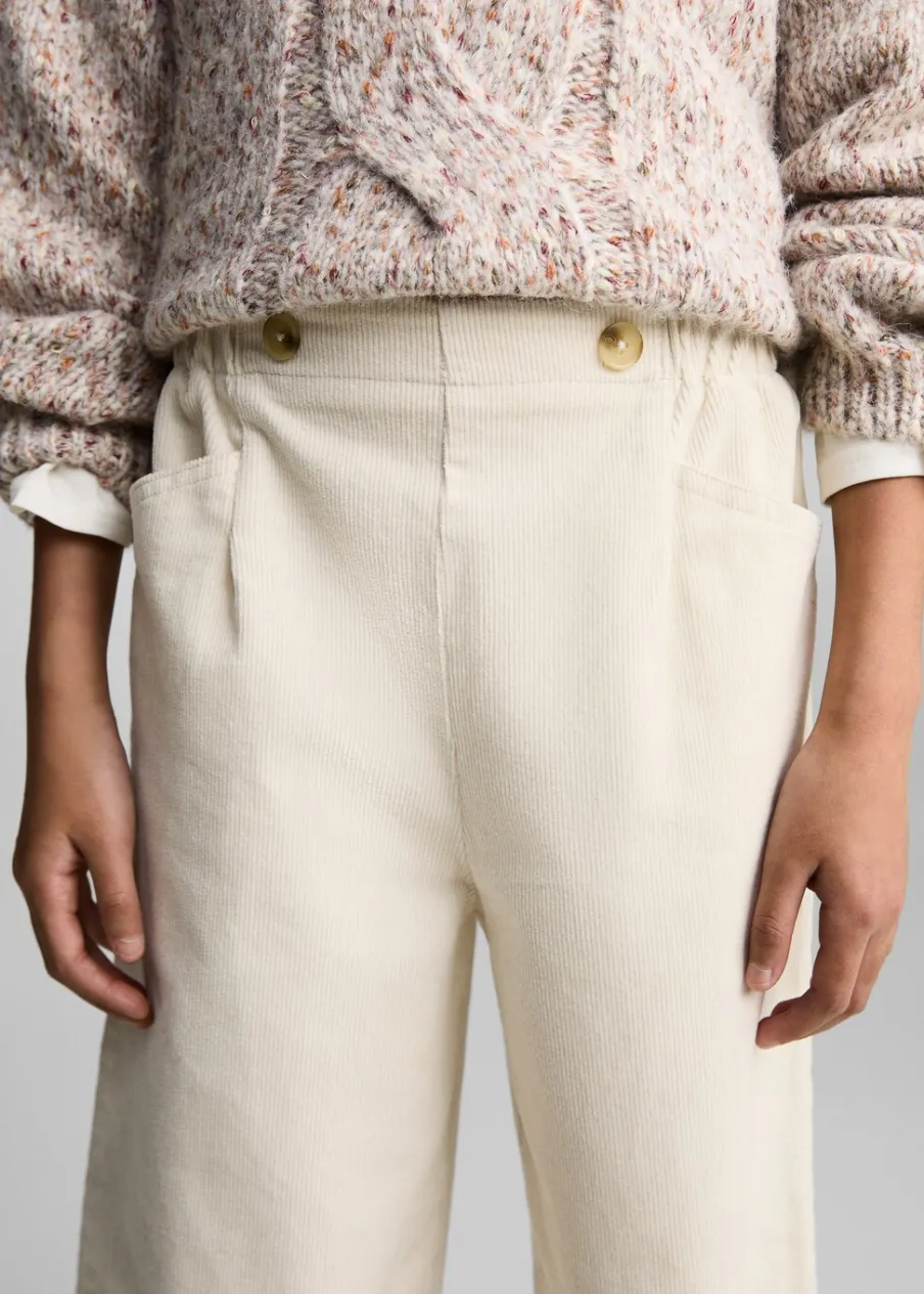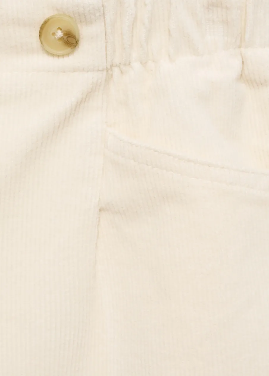 Sztruksowa tkanina. Elastyczny pas. Fason culotte. Elastyczna gumka. Regulowany pas. Dwie kieszenie boczne. Kolekcja Powrót do szkoły.