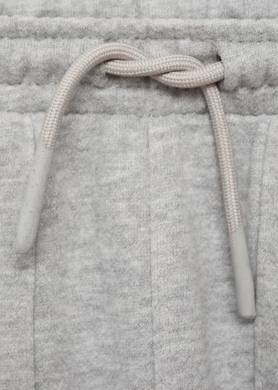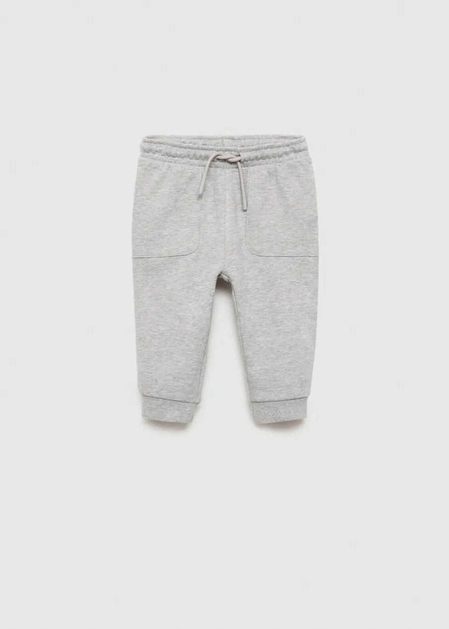 OpisTkanina z bawełną. Fason jogger. Elastyczny pas z wiązanym zapięciem. Dwie kieszenie boczne.