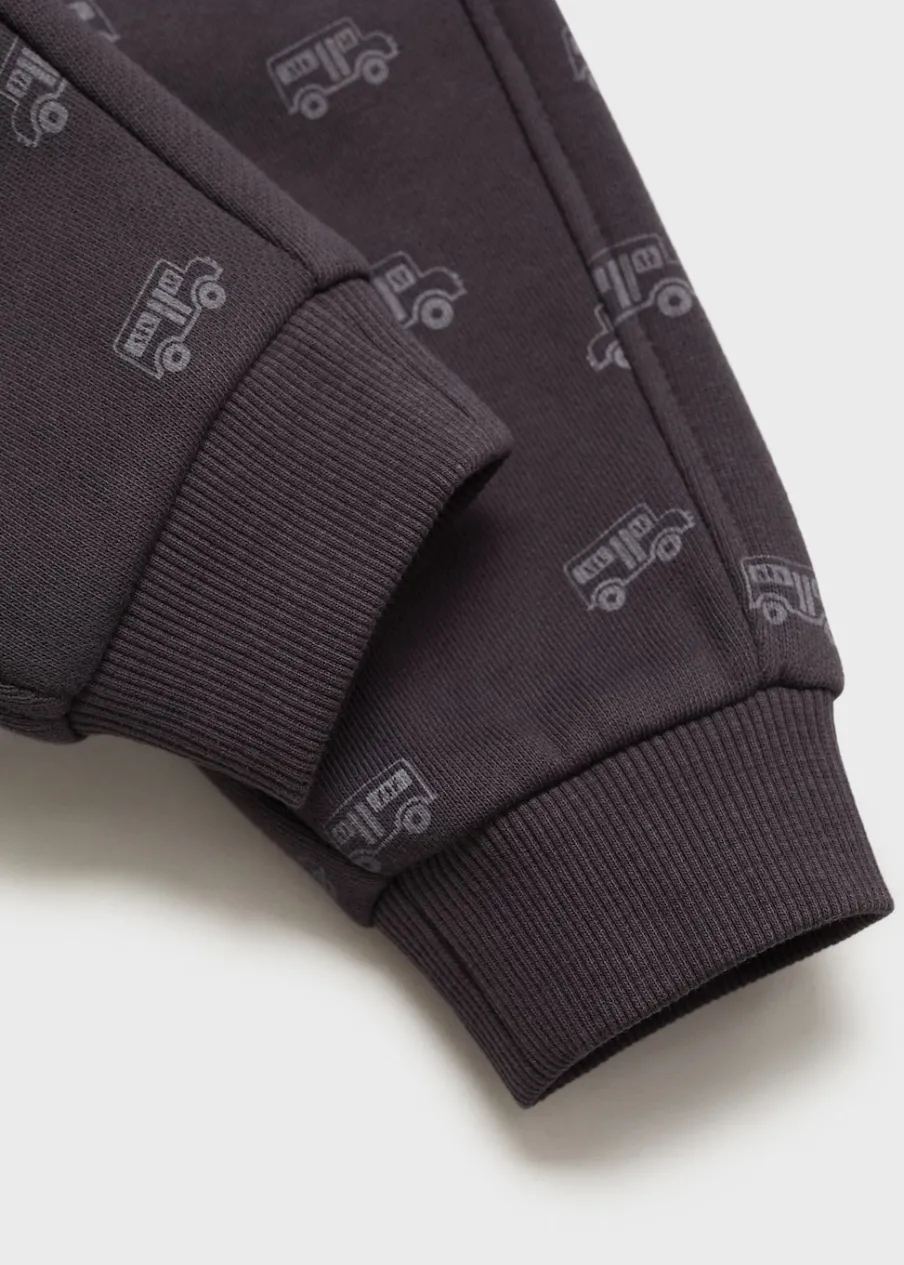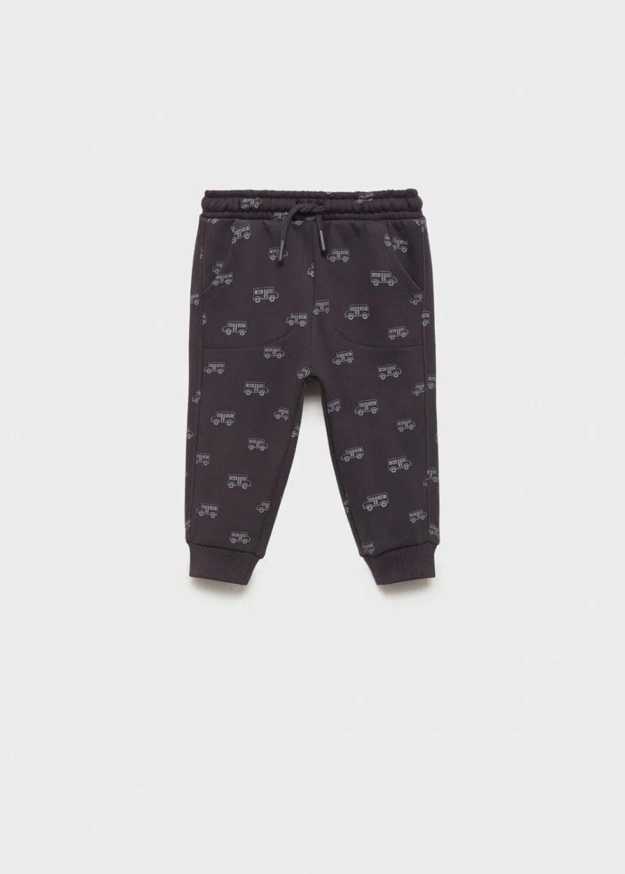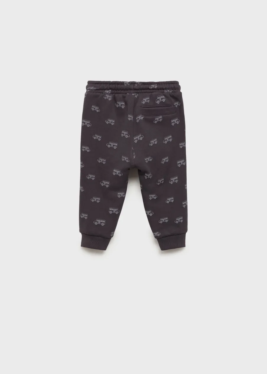 Bawełna 100%. Fason jogger. Nadruk. Elastyczny pas. Nogawki wykończone gumką. Wiązanie na sznurek. Dwie kieszenie boczne. Naszywana kieszeń z tyłu.