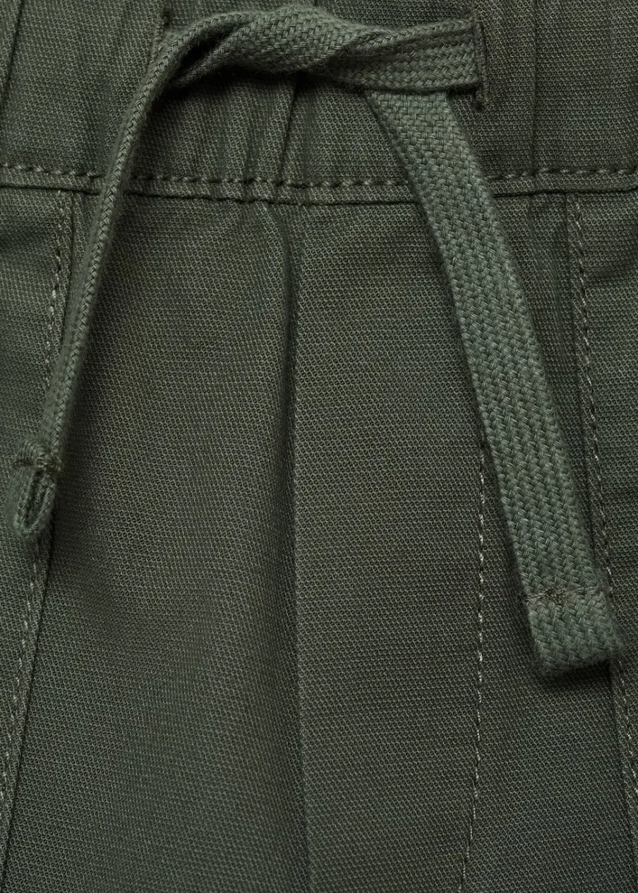 Bawełna 100%. Model prosty. Elastyczny pas ze sznurkiem. Dwie kieszenie z przodu. Kieszenie nakładane z tyłu. Podwinięcie u dołu.