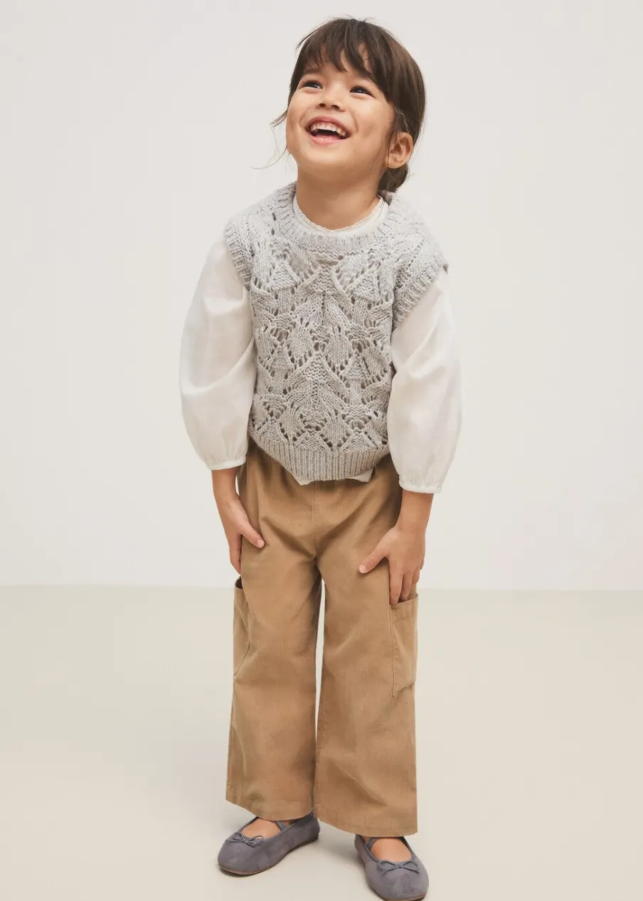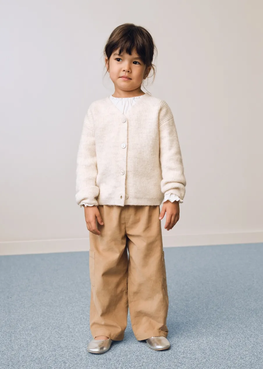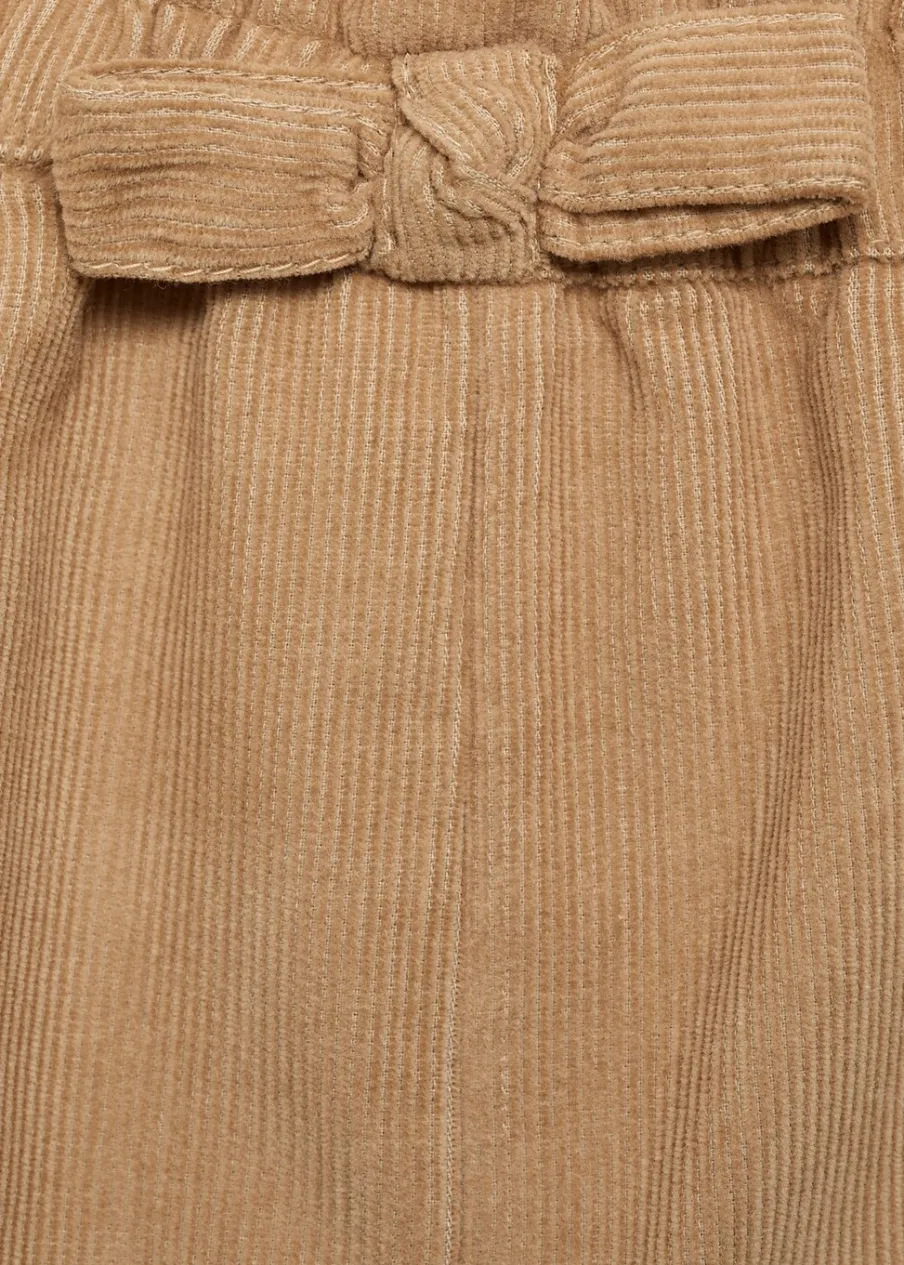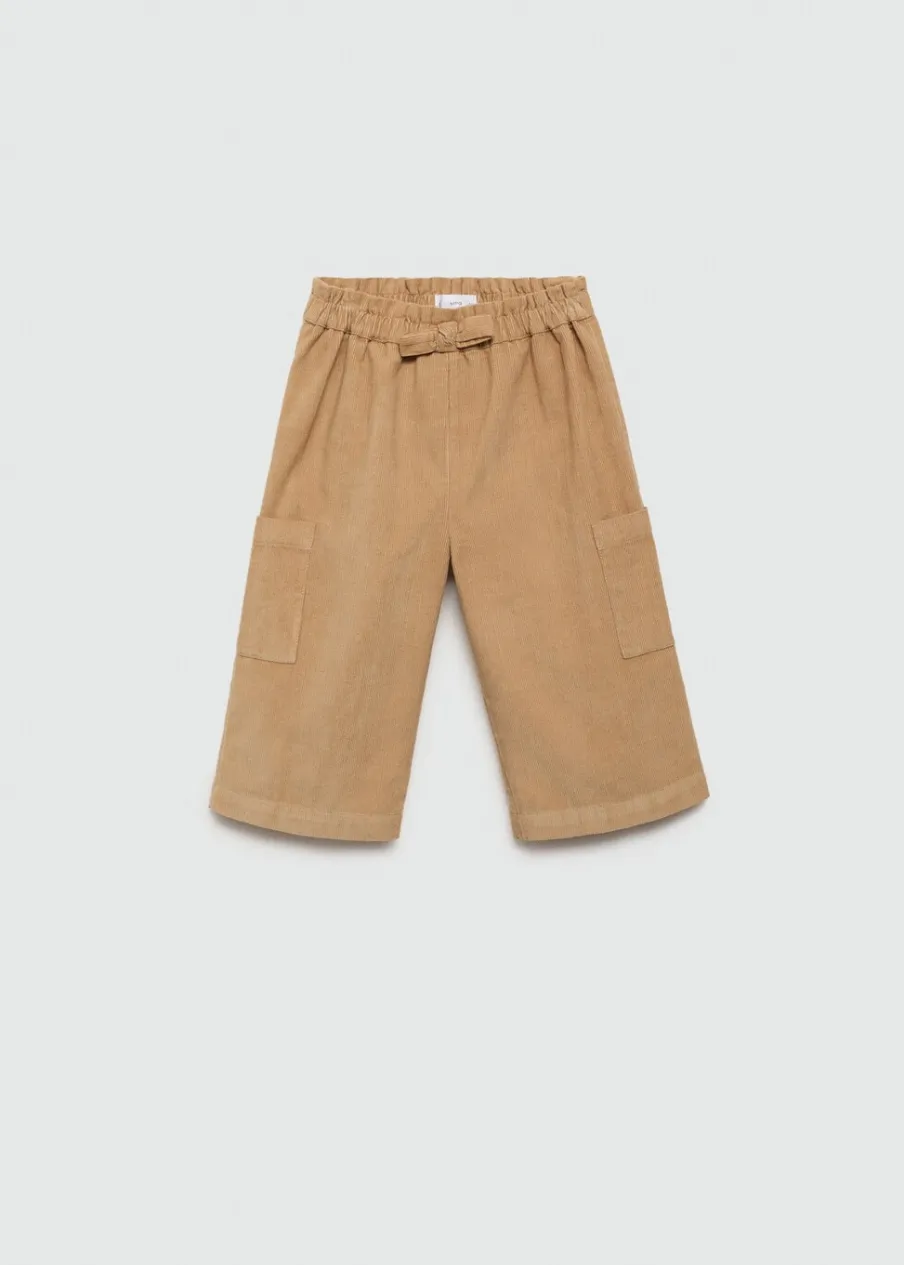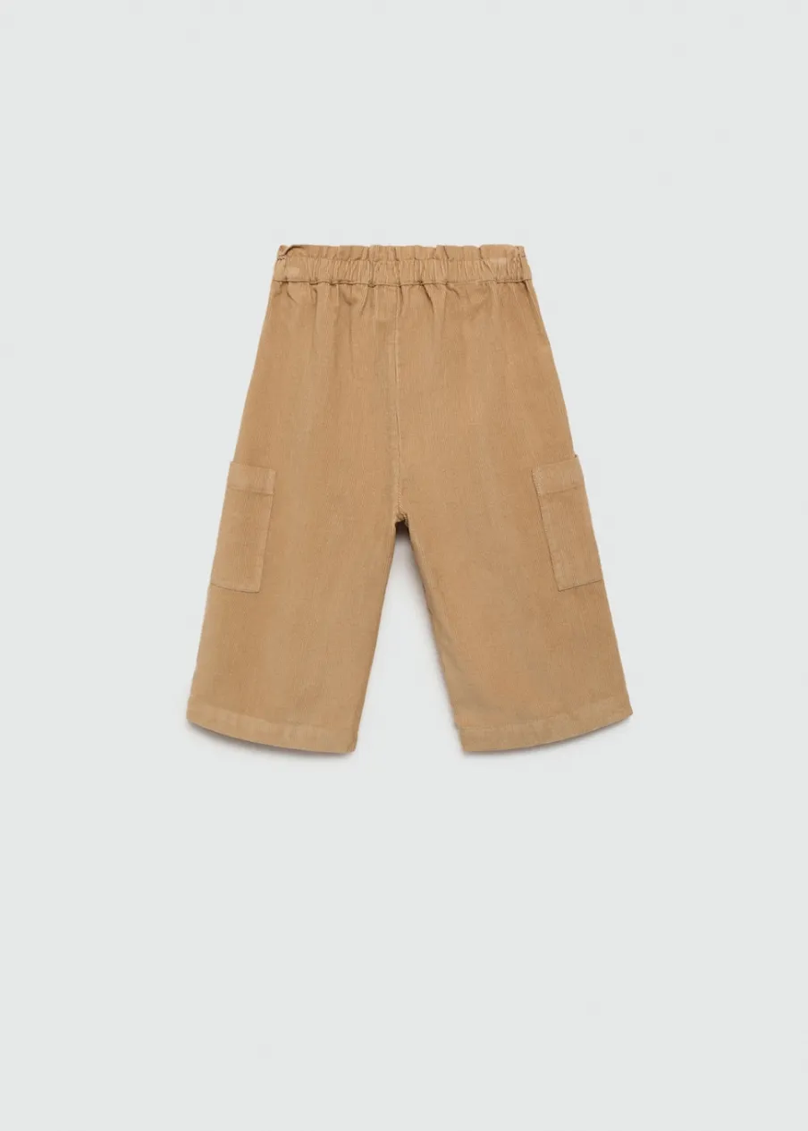 OpisPowrót do szkoły. Tkanina sztruksowa. Model prosty. Elastyczny pas. Dwie kieszenie cargo. Bez zapięcia.