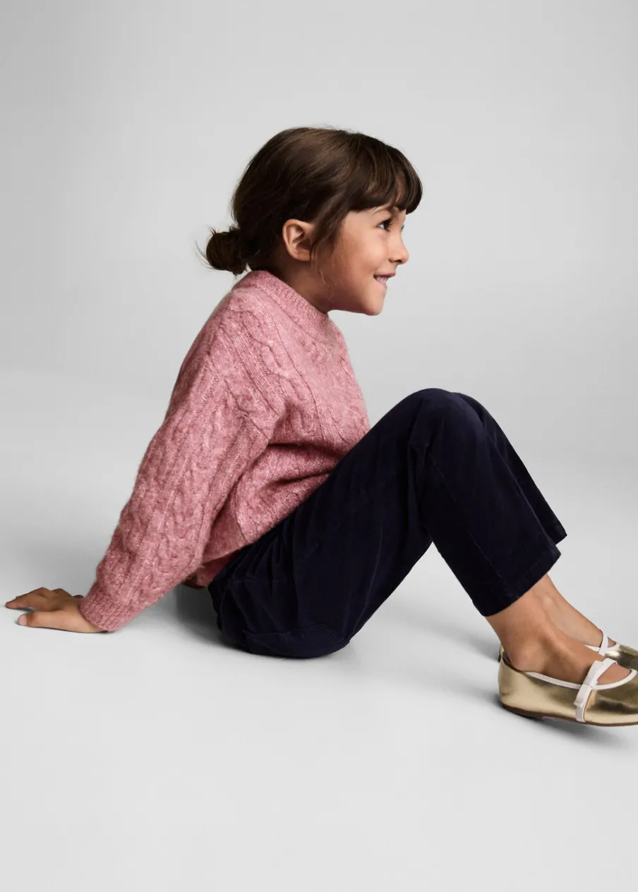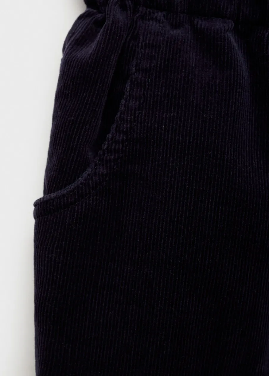 Sztruksowa tkanina. Model prosty. Paperbag. Cztery kieszenie. Elastyczny pas. Bez zapięcia.