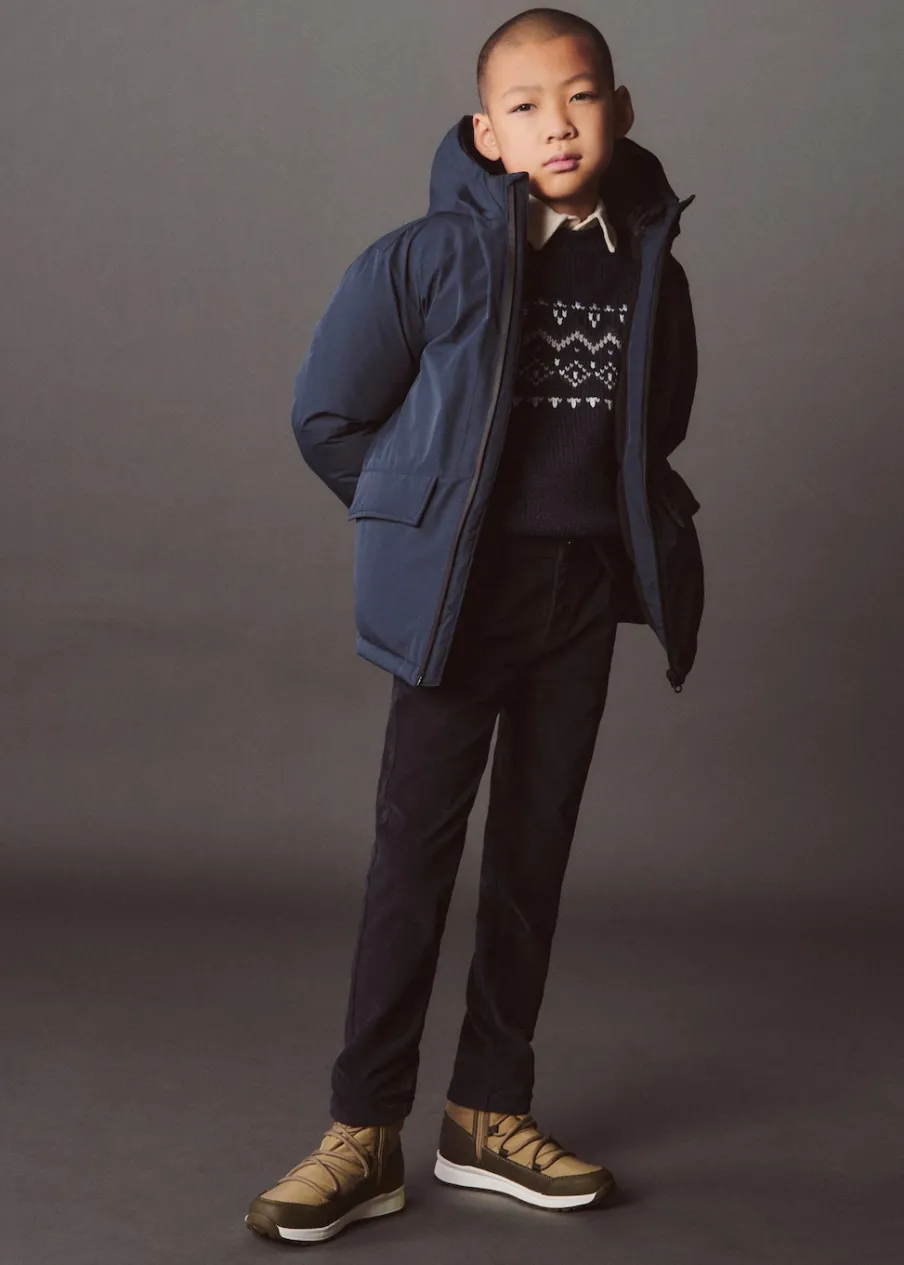 Tkanina z bawełną. Model prosty. Tkanina sztruksowa. Model długi. Pięć kieszeni. Zapięcie na suwak i guzik.