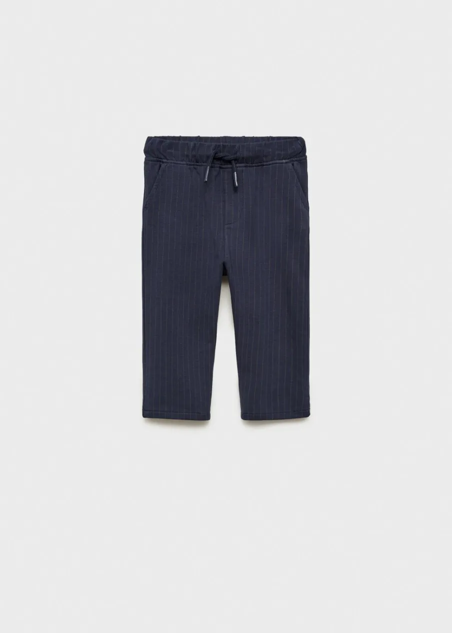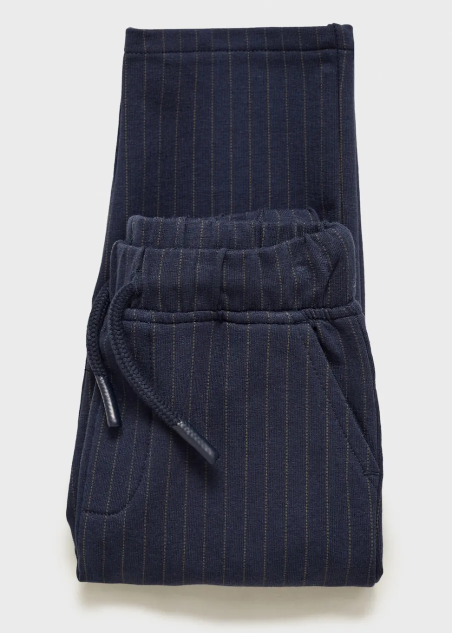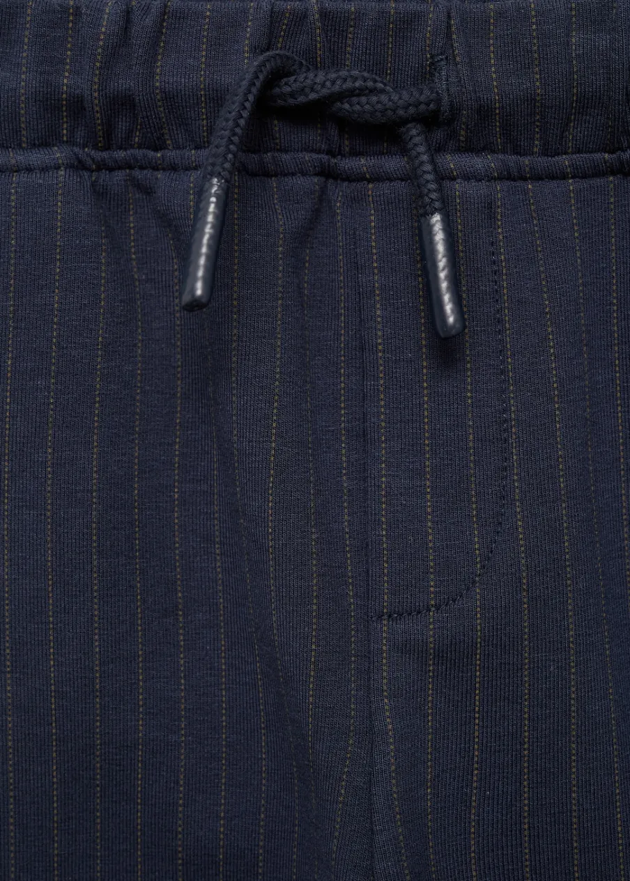Bawełniana tkanina. Deseń w prążki. Model prosty. Model długi. Dwie kieszenie boczne. Elastyczny pas. Wiązanie na sznurek.