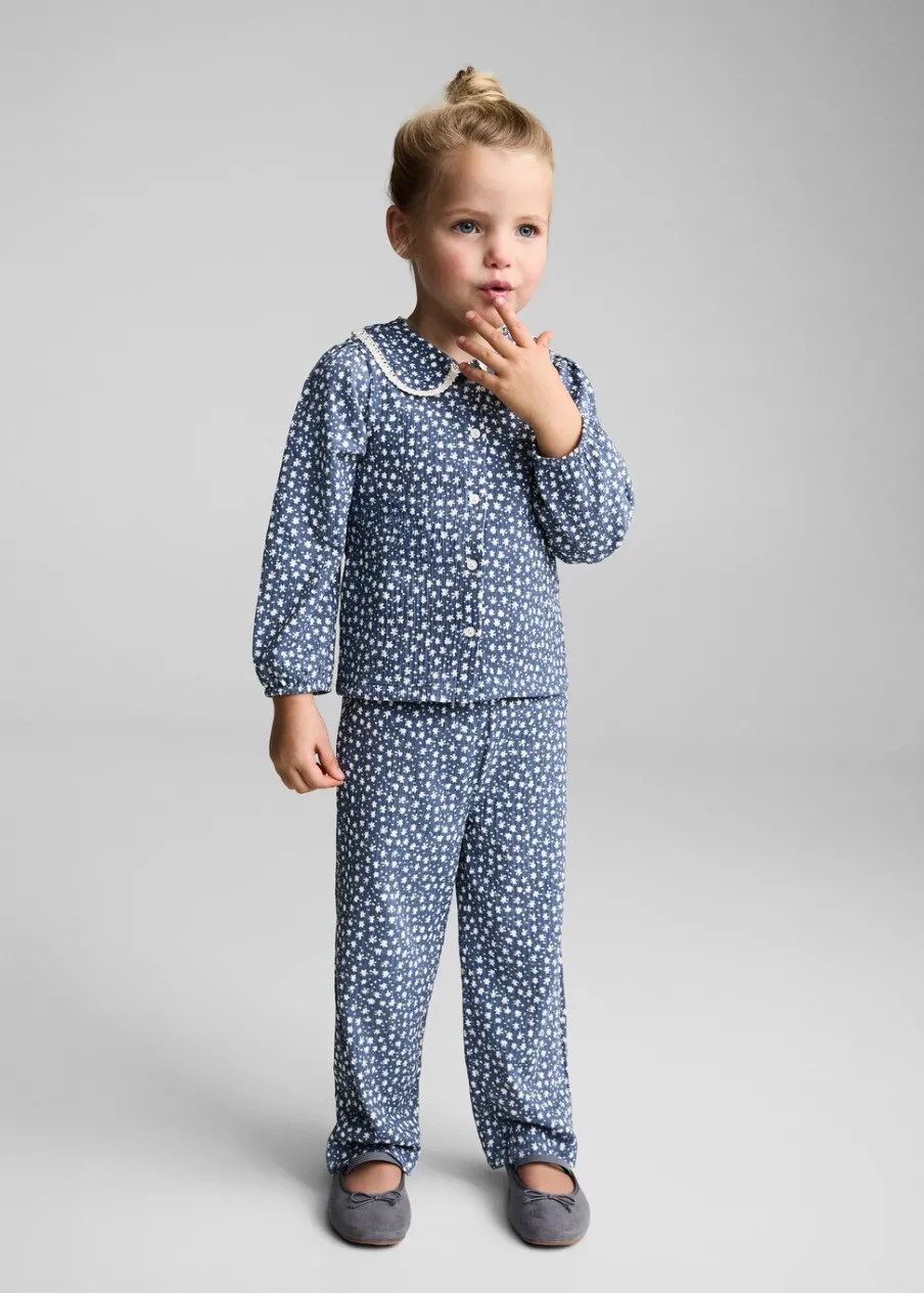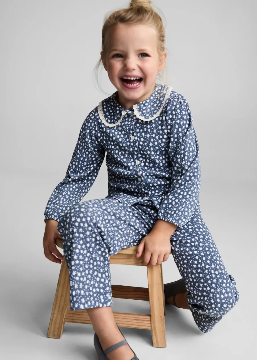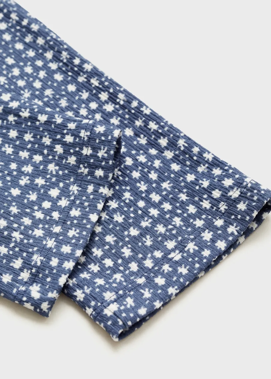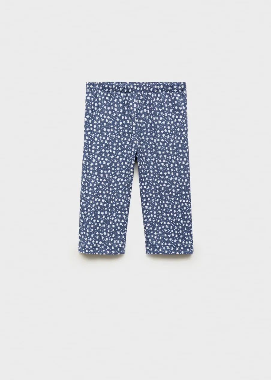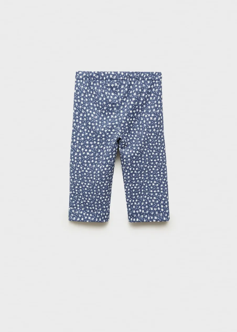 Elastyczny pas. Rozszerzana ku dołowi nogawka. Tkanina z bawełną. Nadruk.
