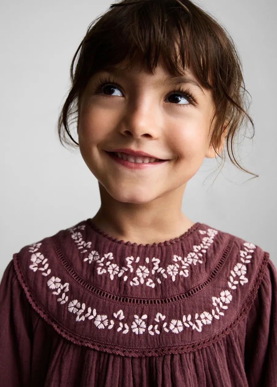 100% bomull. Deseń w kwiaty. Model prosty. Długi rękaw. Cienka tkanina. Okrągły dekolt. Zapięcie z tyłu na guziki.