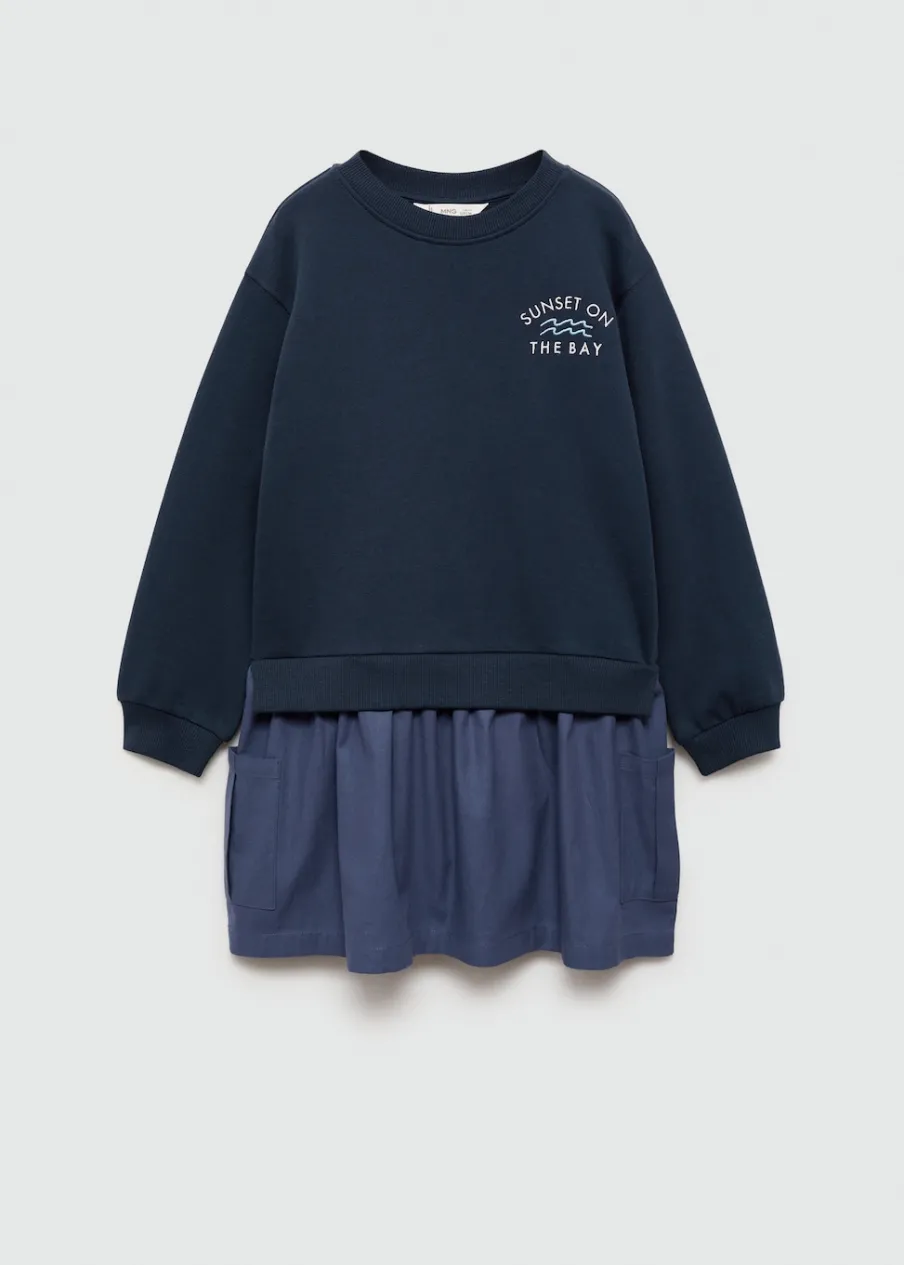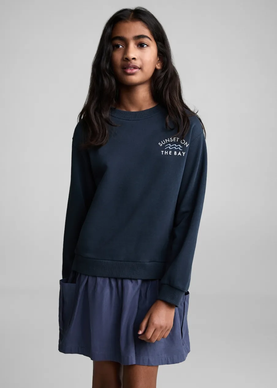 Kolekcja Powrót do szkoły. Bawełna 100%. Model prosty. Haftowany detal. Surferski nadruk. Okrągły dekolt. Długi rękaw. Krótki krój. Spódnica z koła. Dwie kieszenie boczne. Bez zapięcia.