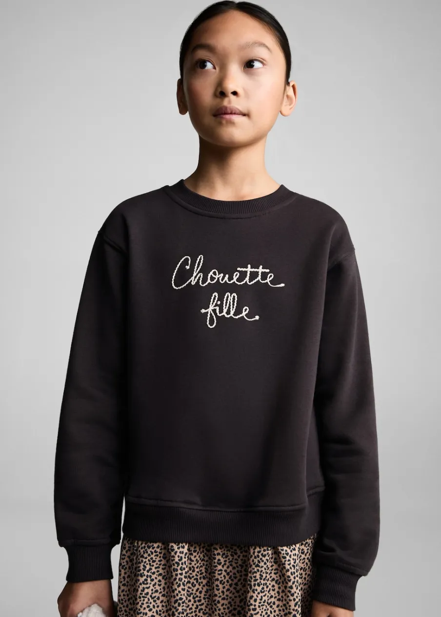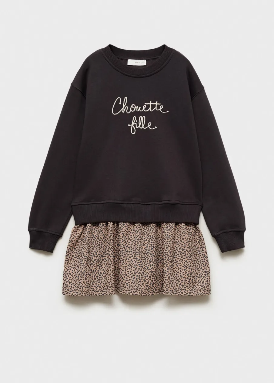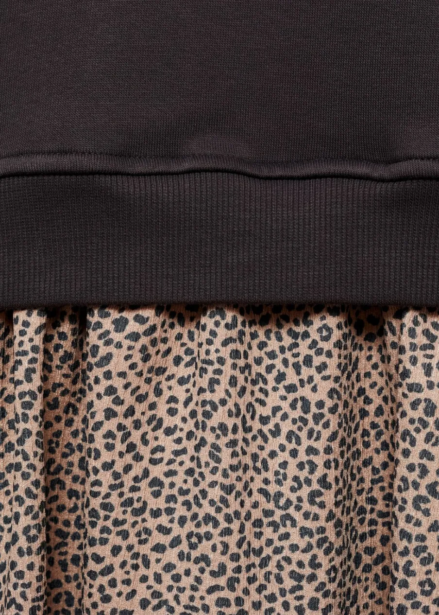 OpisTkanina z bawełną. Haftowany detal. Okrągły dekolt. Długi rękaw. Zwierzęcy wzór.
