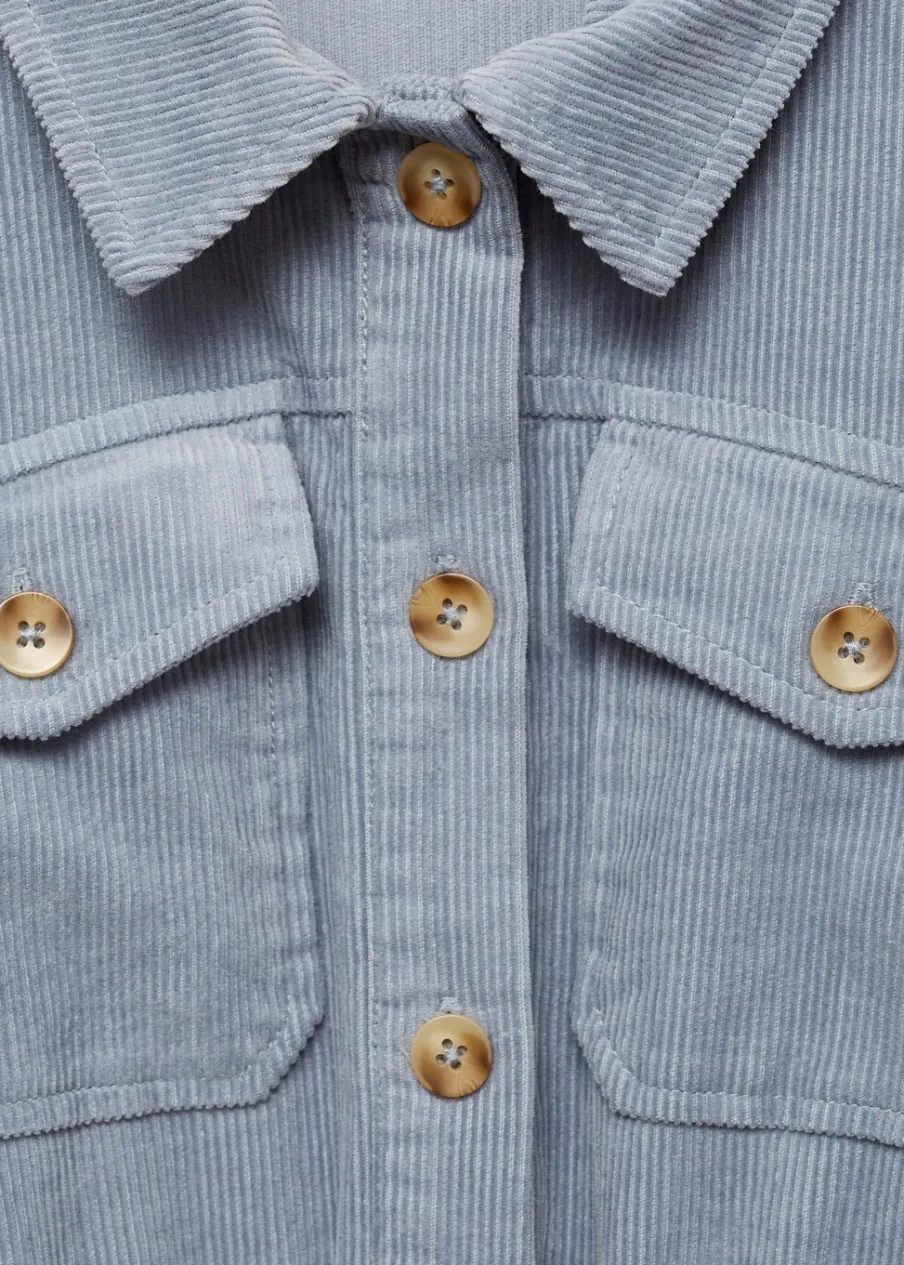 Kolekcja Powrót do szkoły. Koszulowy kołnierz. Sztruksowa tkanina. Model długi. Model prosty. Zapinane kieszenie z patkami. Zapięcie na guziki. Długi rękaw. Tkanina z bawełną. Dwie kieszenie boczne.
