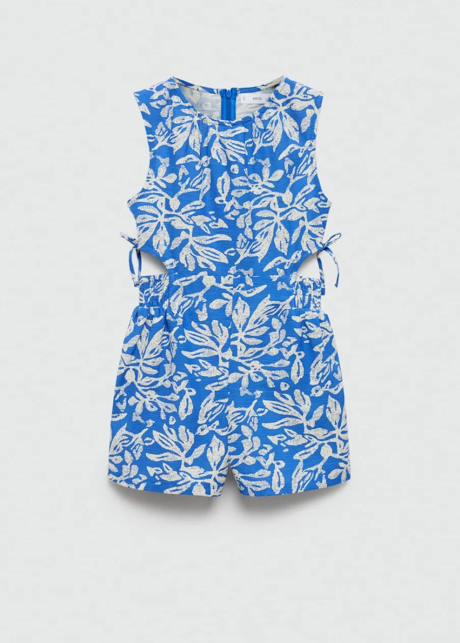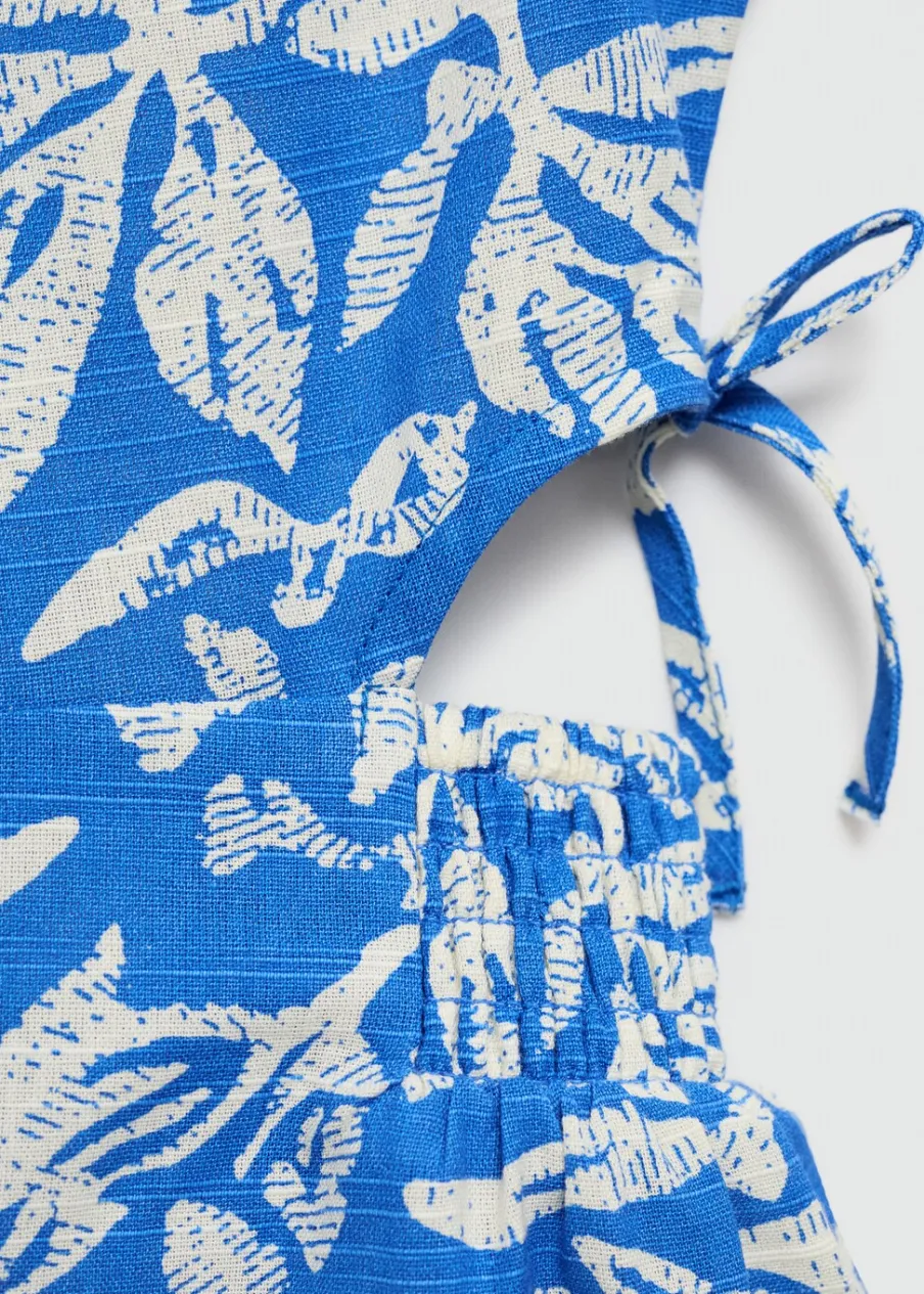 100% bomull. Krótki krój. Model prosty. Kwiatowy wzór. Rozcięcia po bokach z troczkami. Elastyczne marszczenie w talii. Okrągły dekolt. Zapięcie z tyłu na suwak.