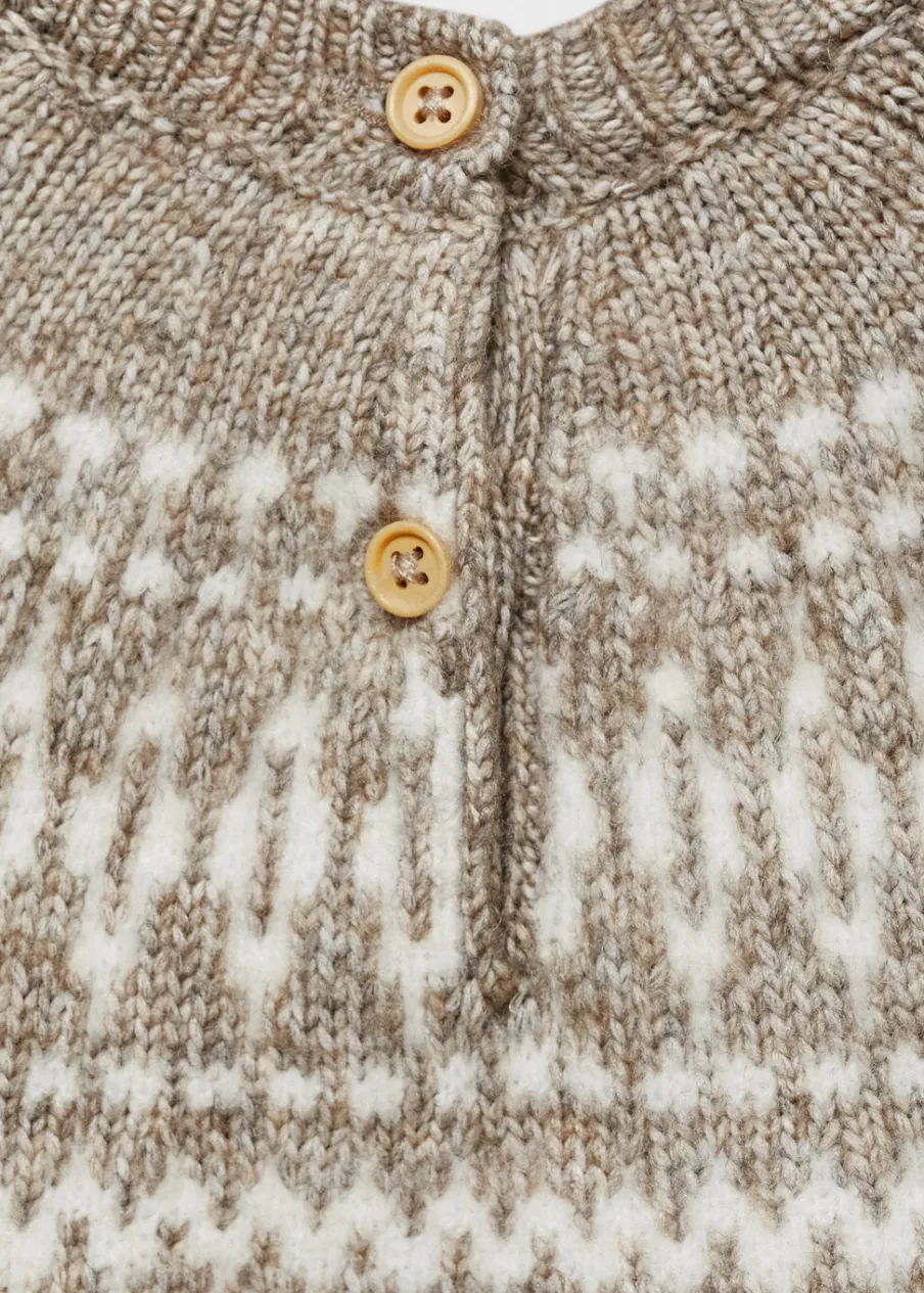 Bawełniana tkanina. Model długi. Nadruk: żakardowy. Okrągły dekolt. Zapięcie z tyłu na guziki. Guziki z imitacji drewna.