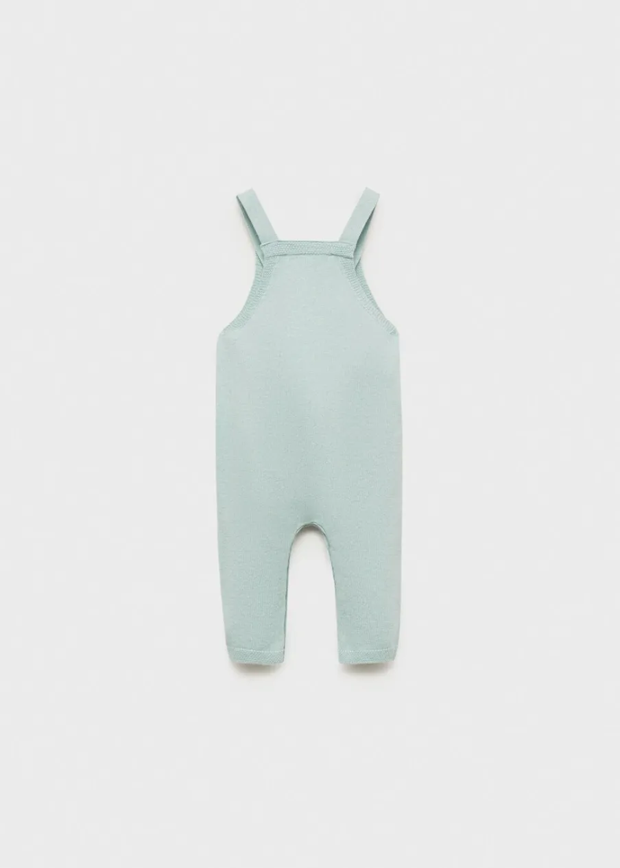 Bawełniana tkanina. Tkanina z cienkiej dzianiny. Ramiączka z zapięciem na guzik. Kwadratowy dekolt. Dwie kieszenie naszyte z przodu. Metalowe zapięcie na zatrzask u dołu.