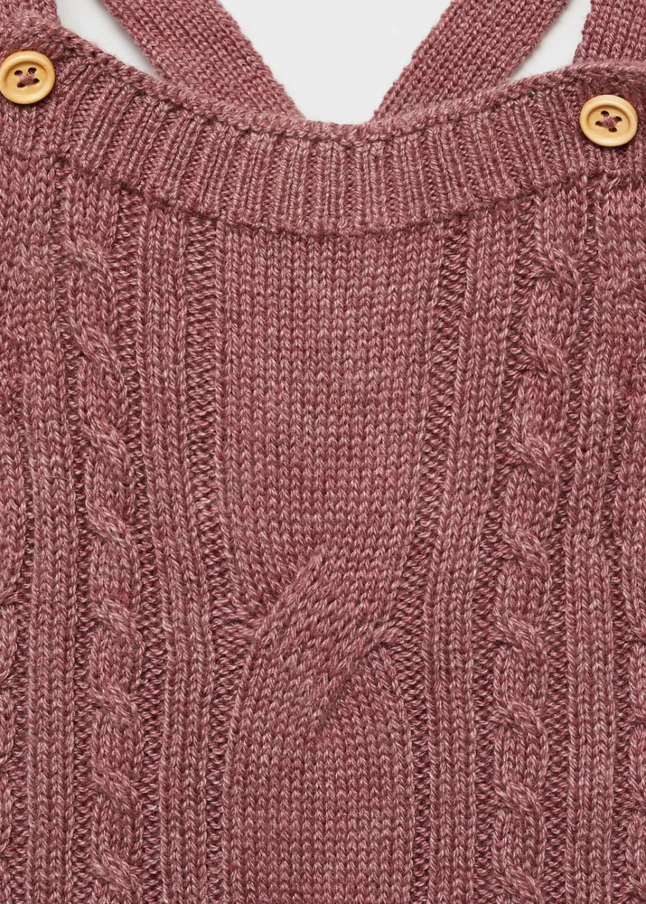 Dzianinowa tkanina. Kwadratowy dekolt. Skrzyżowane ramiączka. Zapięcie na guziki. Rozcięcie u dołu z zapięciem na guziki.