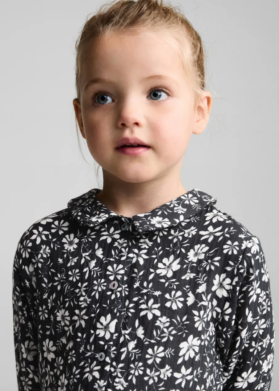 Bawełna 100%. Model prosty. Kwiatowy wzór. Koszulowy kołnierz. Długi rękaw. Zapięcie na guziki z przodu.