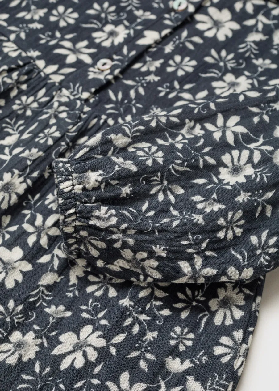 OpisBawełna 100%. Model prosty. Kwiatowy wzór. Koszulowy kołnierz. Długi rękaw. Zapięcie na guziki z przodu.