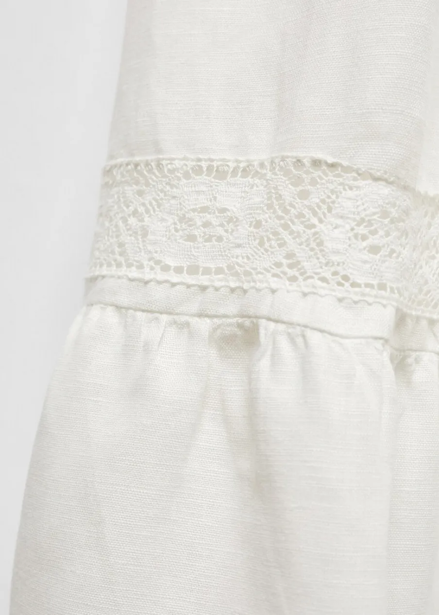 OpisTkanina mieszanka bawełny i lnu. Model długi. Ozdobny haft. Falbanki u dołu. Okrągły dekolt. Krótki rękaw. Wi…