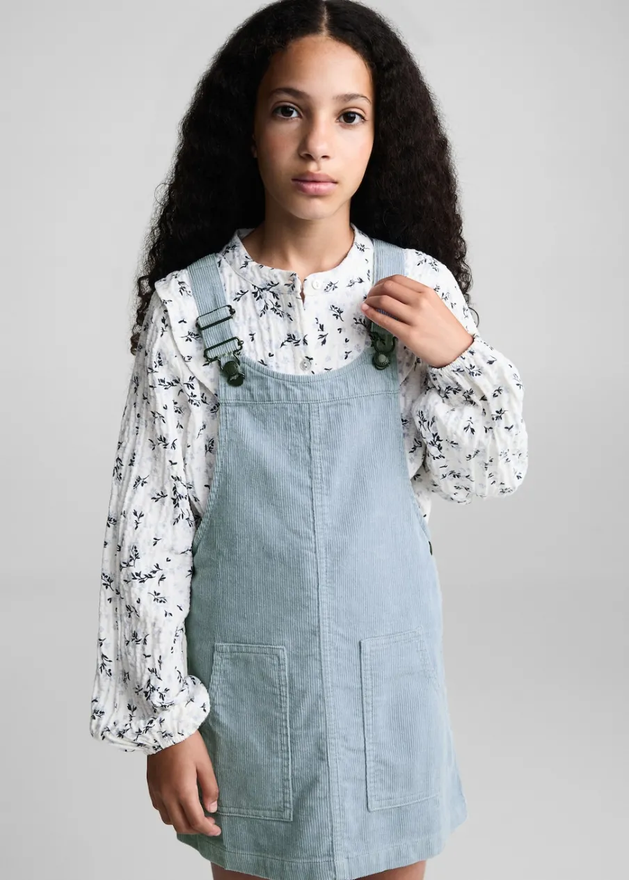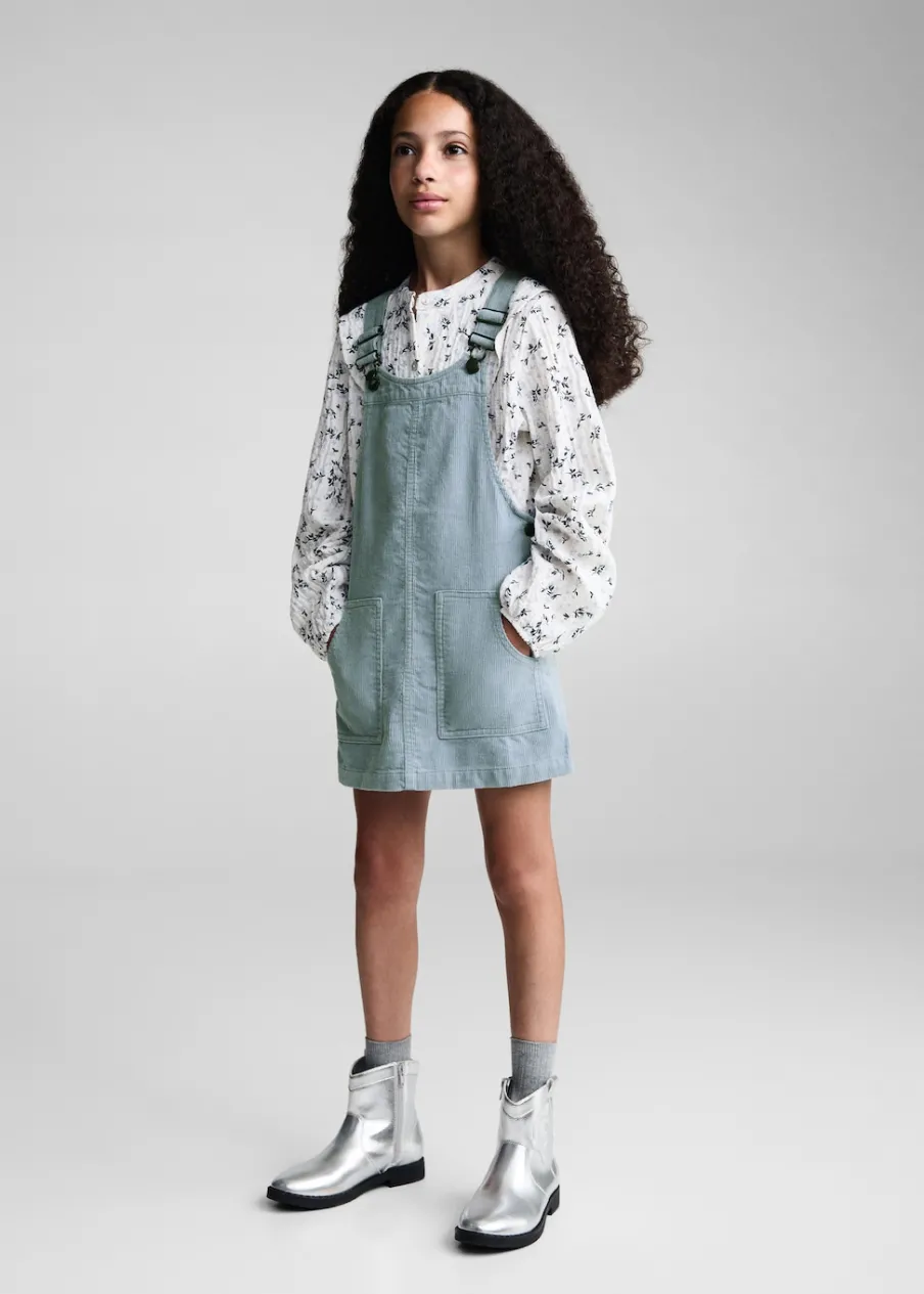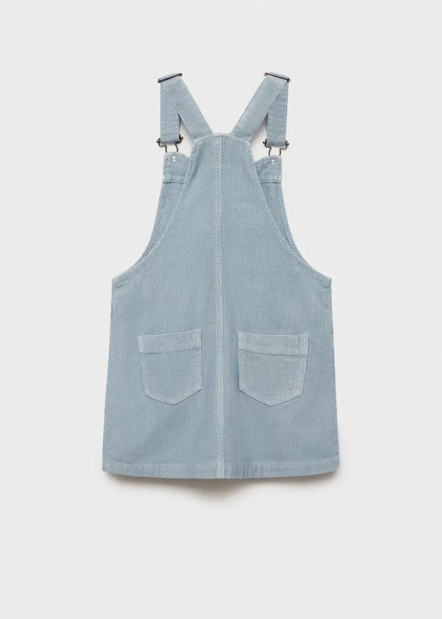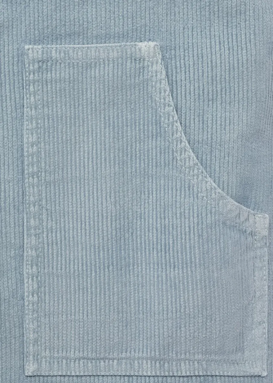 Bawełna 100%. Tkanina sztruksowa. Model prosty. Okrągły dekolt. Szerokie ramiączka. Zapięcie na haftki. Krótki krój. Kieszenie boczne. Dwie kieszenie nakładane z tyłu.