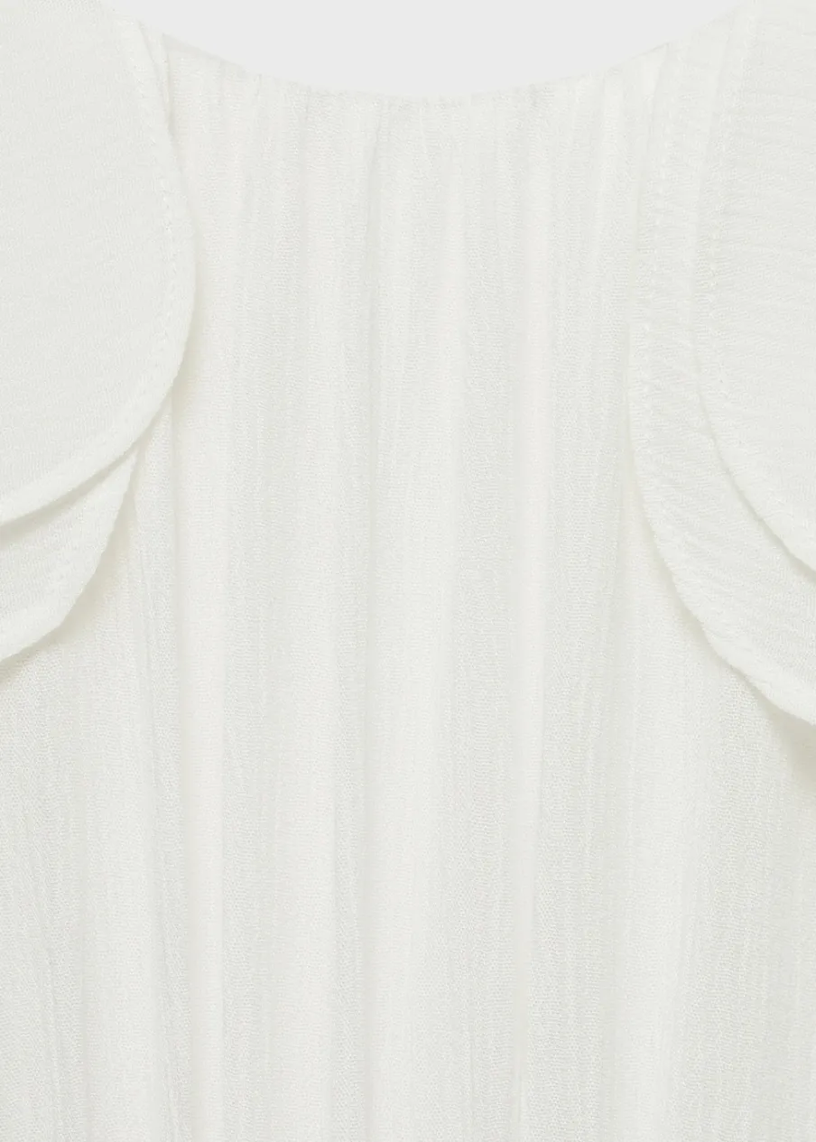 OpisZ teksturą. Ozdobne plisy. Model długi. Okrągły dekolt. Krótki rękaw z falbanką. Dekolt w szpic na plecach. W…