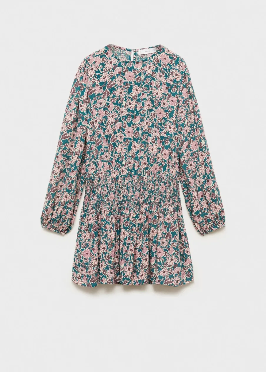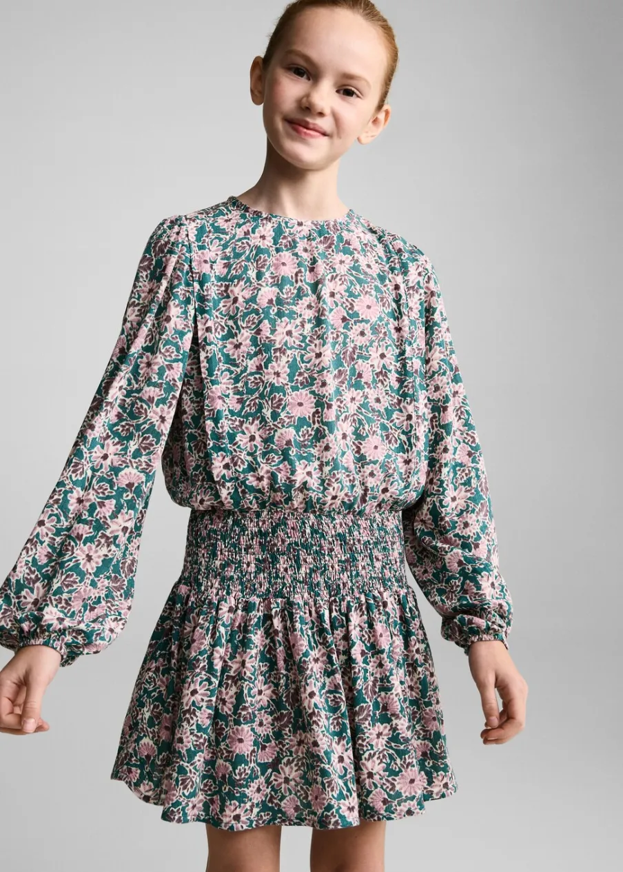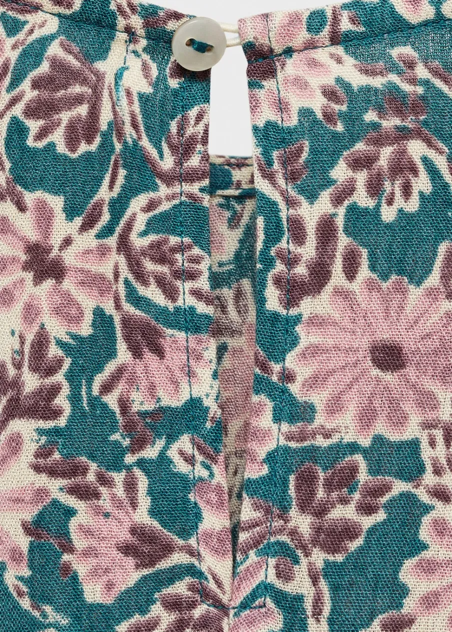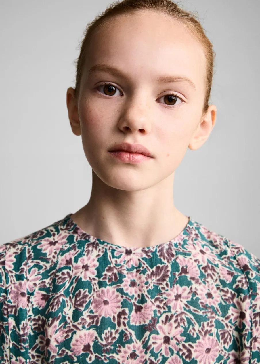 OpisKwiatowy wzór. Model prosty. Marszczona tekstura. Okrągły dekolt. Długi rękaw z elastycznymi mankietami.