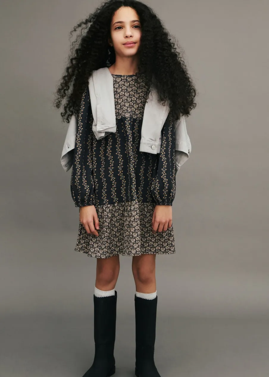 OpisMieszanka wzorów. Krótki krój. Okrągły dekolt z zapięciem na guzik. Długi rękaw z elastycznymi mankietami.